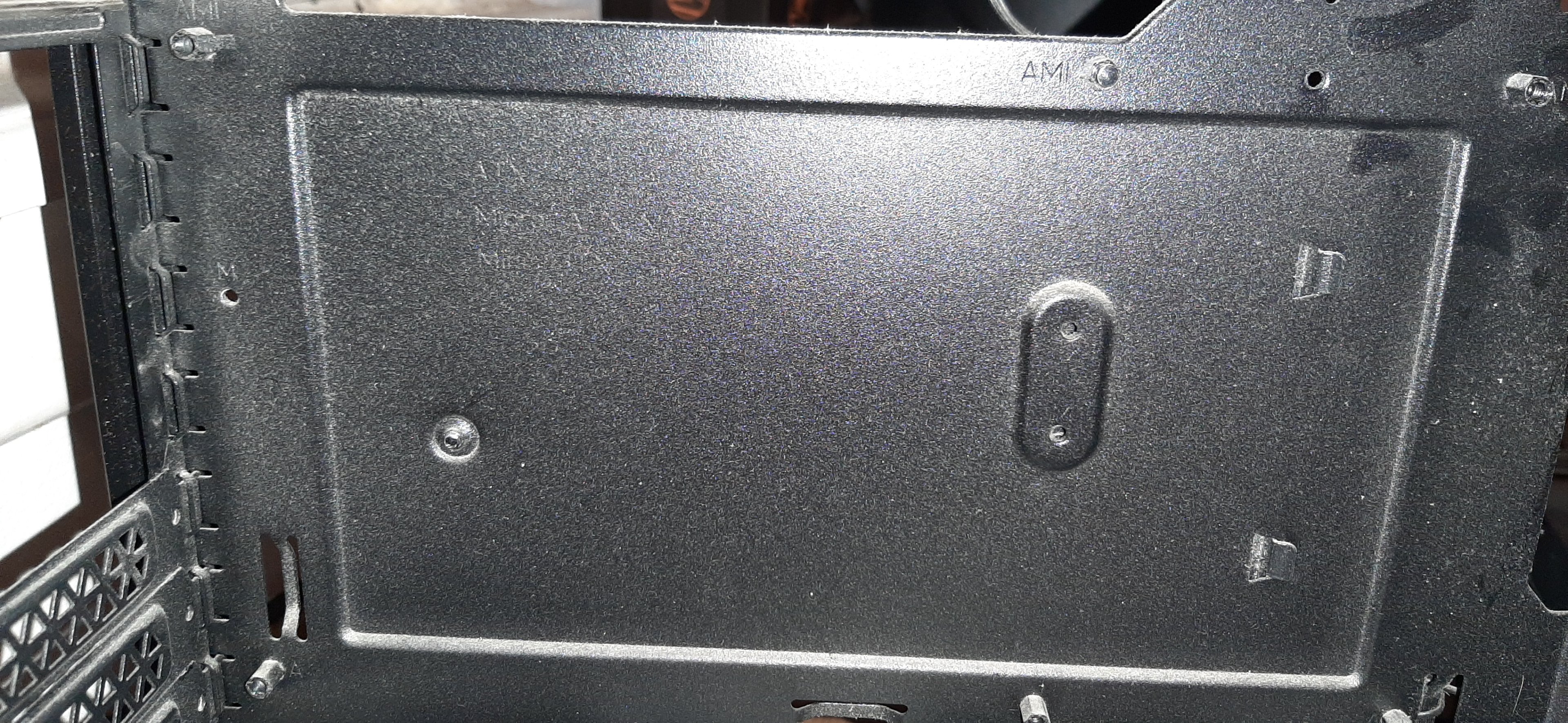 War das so gemeint ?Dark9 schrieb:Es wäre auch gut, wenn @Evaded nach dem er alles ausgebaut hat, das innere vom PC Gehäuse fotografiert. Inbesonders den Bereich wo die Abstandshalter fürs MB kommen. Ich gehe davon aus, dass die Schraube, die er zum befestigen der SSD genommen hat, die Schraube das Gehäuse berührt hat. Kann mich irren, aber umso wichtiger ist jetzt ein Foto davon