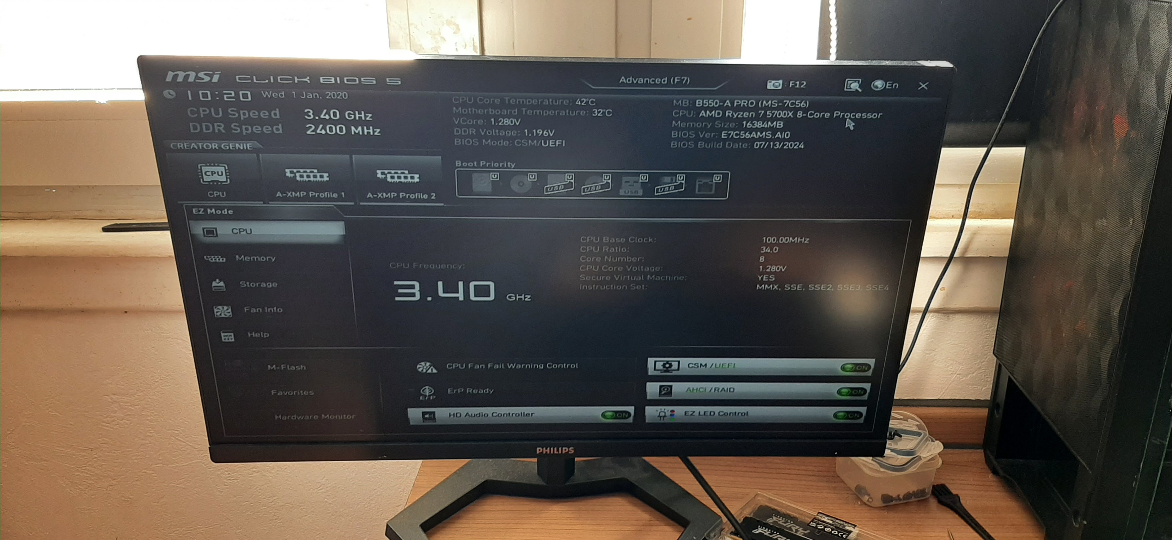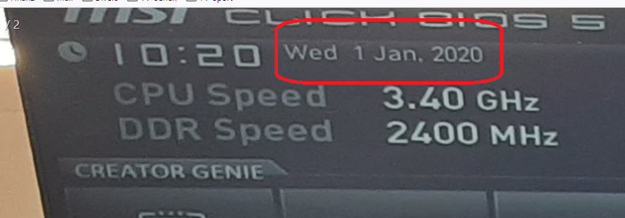 Ich wiederhole mich, deine CR2032 Biosbatterie ist leer. Siehe im Bios das Datum ist im Jahr 2020. also 5 Jahre alt.