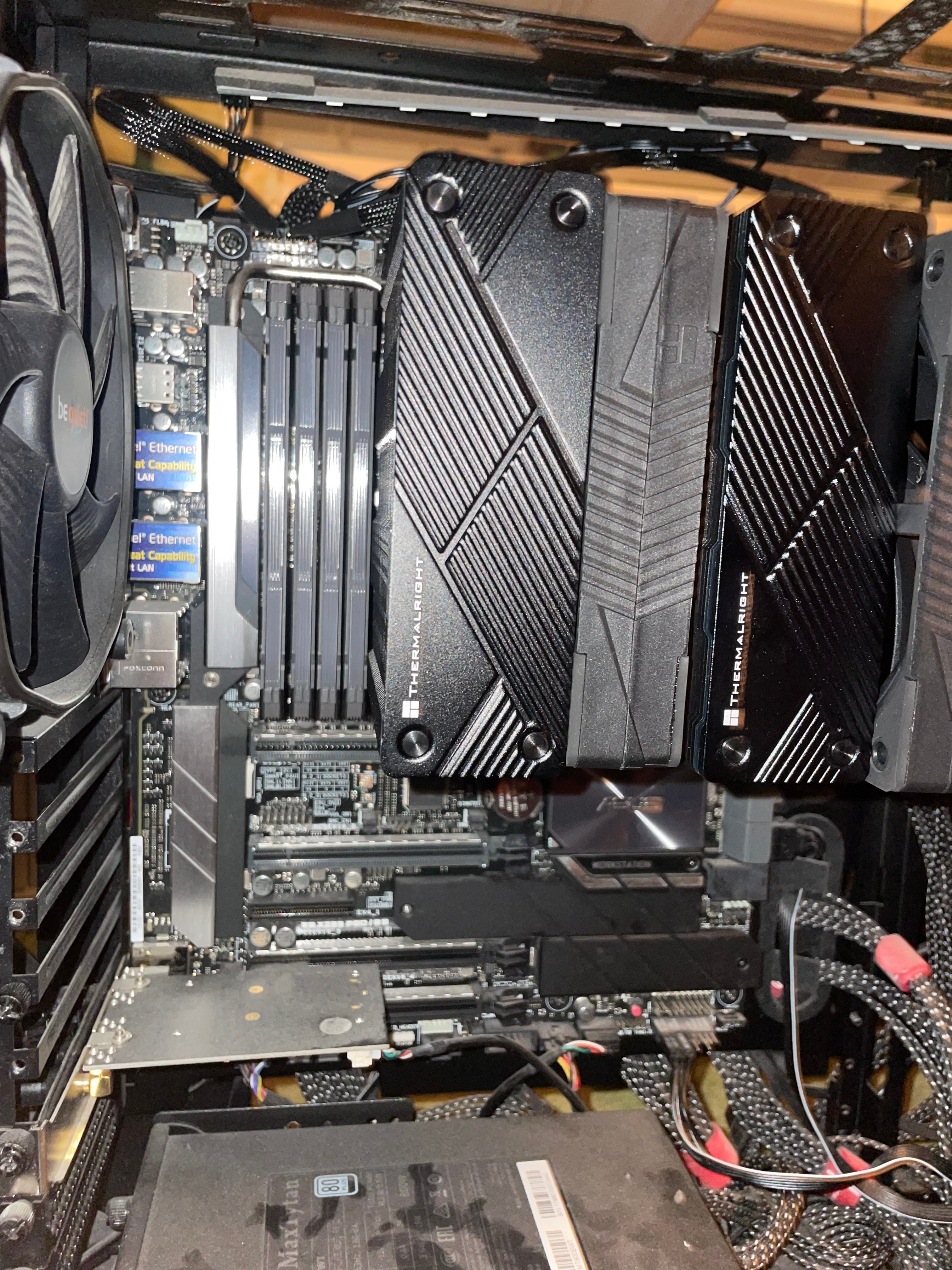 Mein Problem ist wie folgt: Ich habe meinen PC umgebaut, genauer gesagt habe ich meinen Custom WaKü-Loop rausgeworfen und bin auf Luftkühlung umgestiegen. Dementsprechend wollte ich auch noch gleich eine neue GraKa einbauen, da mir die Vega64 etwas zu lahm ist. Nun, nach dem Umbau bekomme ich kein Bild mehr. POST läuft normal und der PC bootet auch, komme demnach auch ins BIOS, dennoch zeigt mir die Karte kein Bild. Die Lüfter drehen sich und das Gigabyte Logo leuchtet. Der Monitor ist nicht komplett ausgeschalten, leuchtet einfach nur leicht nach dem Booten.