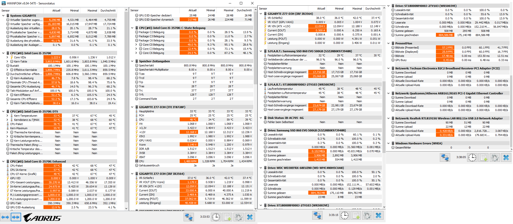 - Mainboard: Gigabyte GA-Z77-D3H mit BIOS F23b (letztes); Treiber von Windows/MS