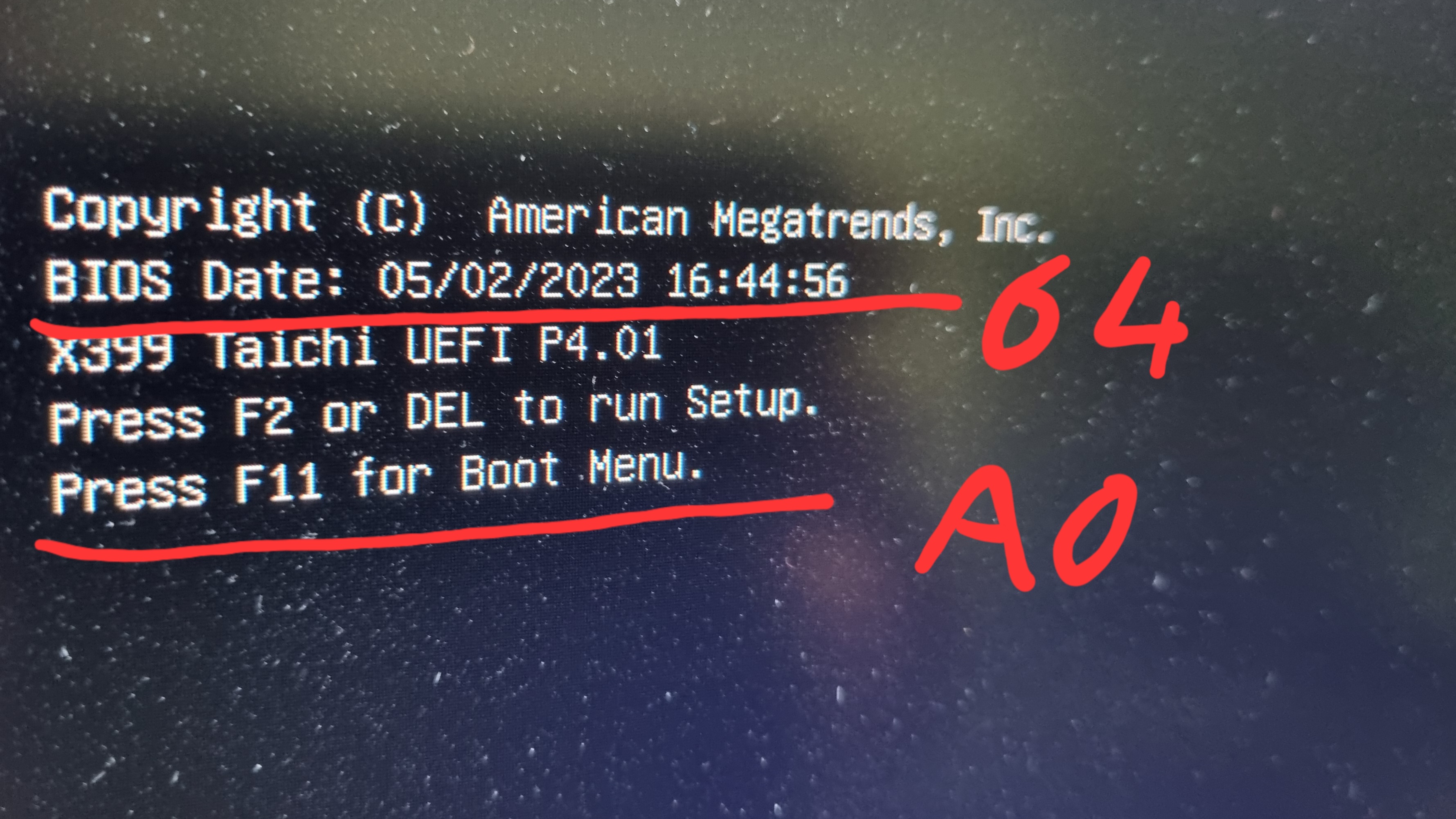 Die Status LED des Mainboard hängt bei 64 (oder b4) nach etwa 5 Minuten wechselt die LED Anzeige auf A0 und hängt weitere Minuten.