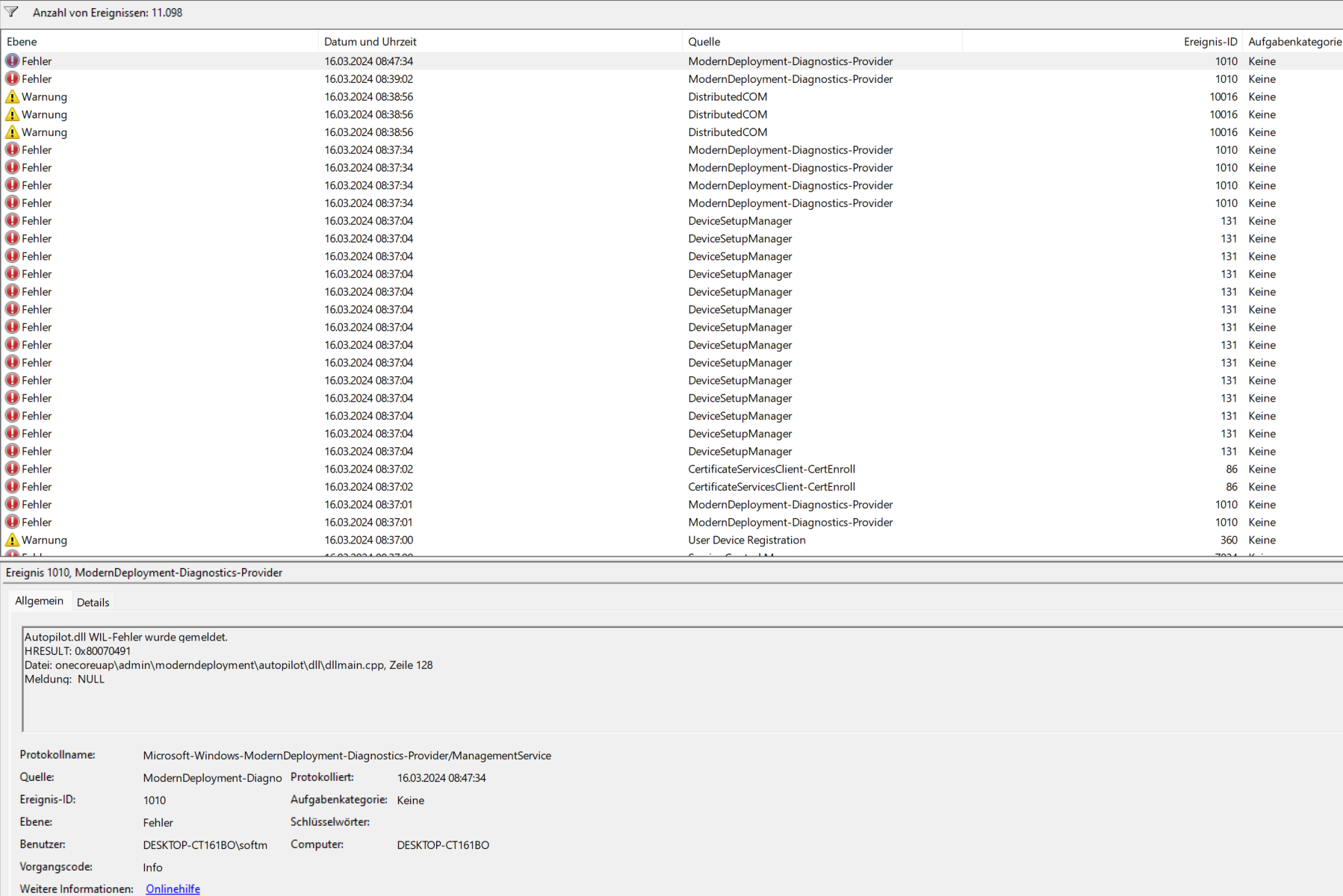 Die Computerverwaltung von Windows zeigt mir auch viele Fehler an (Siehe Bilder im Anhang). PC Specs auch im Anhang. Ich habe aber leider keine Ahnung, wie rausbekommen kann, wo das Problem liegt und welches Teil ggf. nicht gut funktioniert.