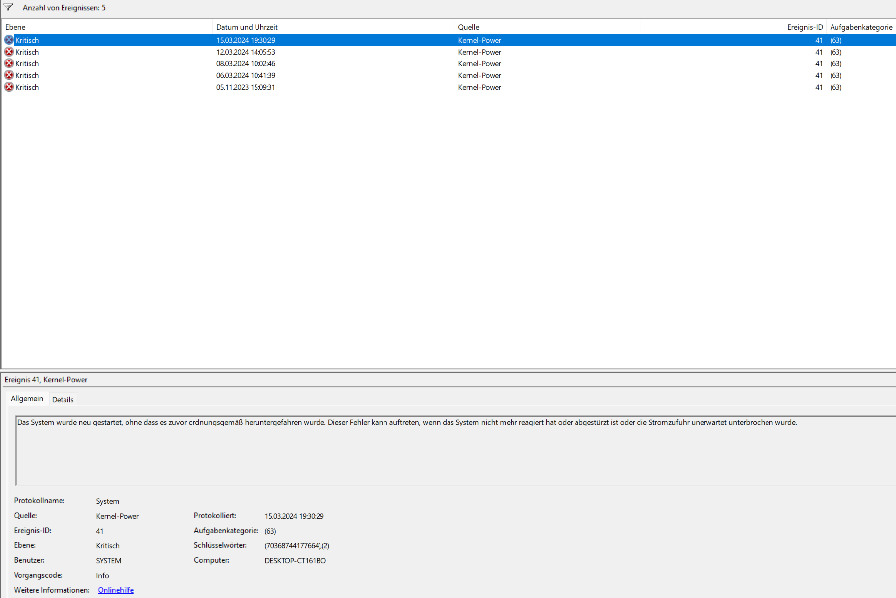 Hinzu kommt, dass der PC jetzt in der letzten Zeit sich auch ein paar einfach so neugestartet hat.
