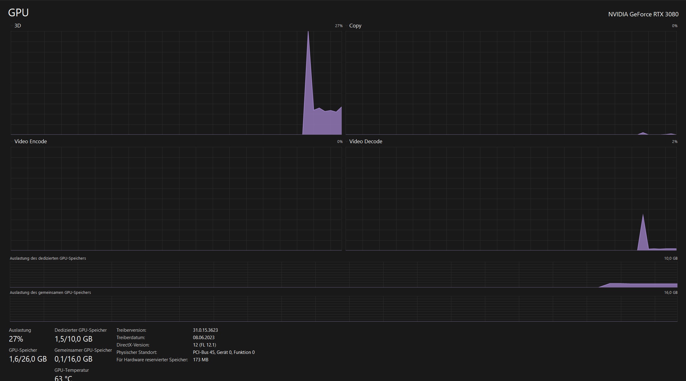 Das Bild im Anhang aus dem Taskmanager zeigt was die Grafikkarte macht, wenn das System wie beschrieben laggt.