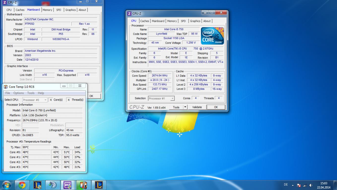 i5 750, ATI 3850, Asus P7P55D, 4 GB Ram, 530 Watt Netzteil.