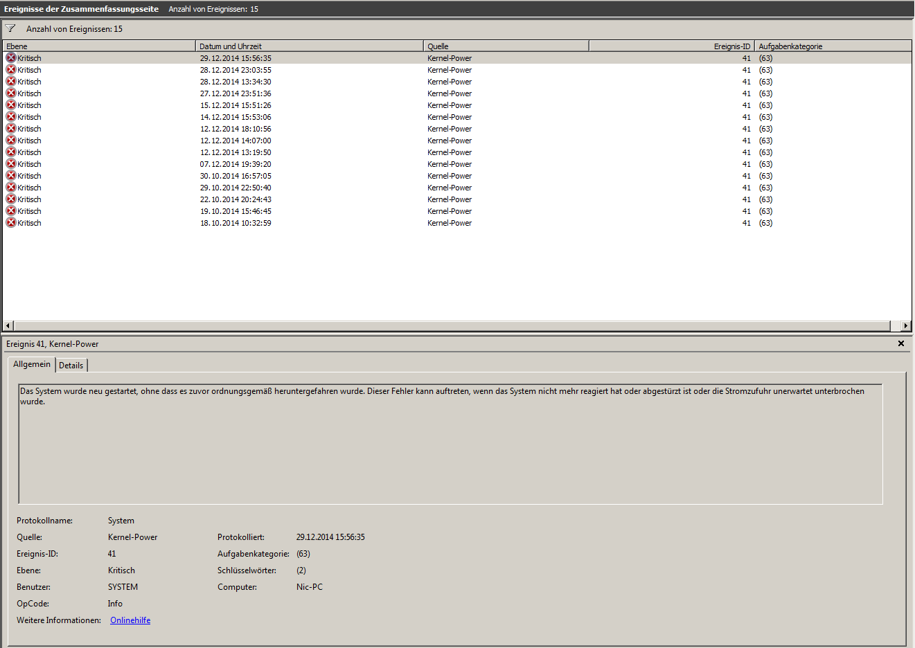 Das einzige was ich dann machen kann ist den Power Knopf am PC so lange zu drücken bis er ausgeht.