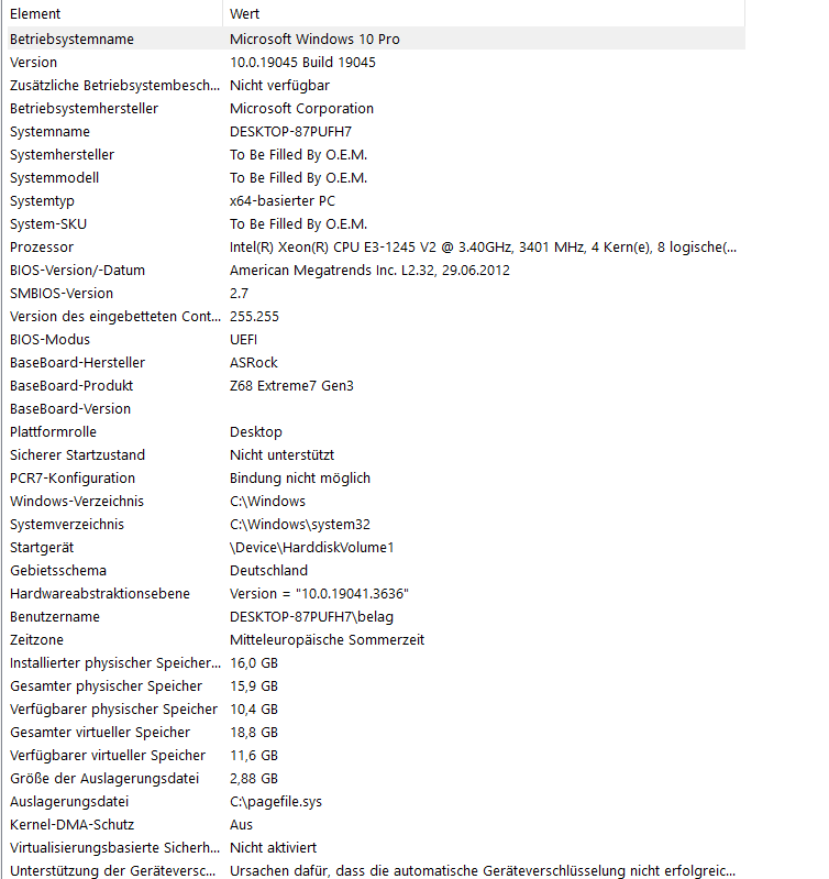 (1) Ich starte Valorant und spiele dieses. Nach einigen Runden schließe ich das Spiel normal und wollte etwas Googlen. Hierfür öffnete ich Firefox und wollte "google" eingeben. Nach dem "g" war Schluss und ich konnte nichts mehr schreiben. Firefox selber konnte ich verschieben. Auch Buttons auf der Startseite sind beim "drüberfahren mit dem Cursor" aufgeleuchtet. Als ich Firefox schließte, hat es dies auch getan. Jedoch war es in der Taskleiste noch als "aktiv" sichbar. Versuche es dort zu schließen klappen nicht. Als ich versuchte meinen PC herunterzufahren, konnte ich zwar auf "Windows-Taste" und "Herunterfahren" klicken. Aber es gab keine Reaktion. Auch "Strg+Alt+Entf" klappte nicht mehr. Somit musste ich ihn abstürzen lassen.