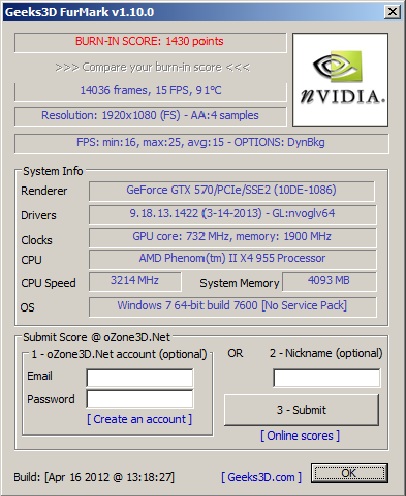 Grafikkarte: EVGA GTX 570 HD, 2,5 GB (Treiber 320.49)