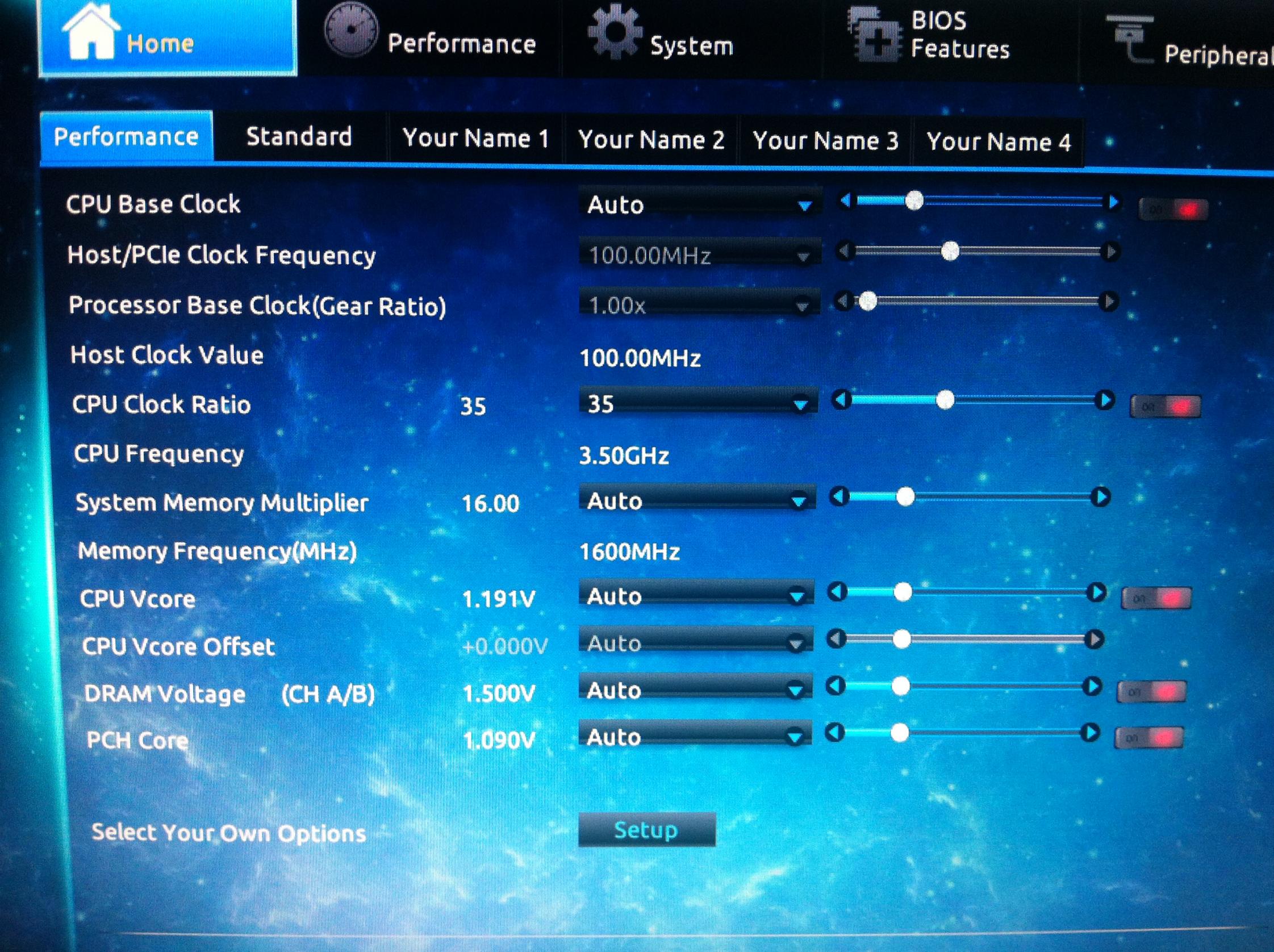 gestern habe ich mir den i7 4770K gekauft und sofort eingebaut. Bei den ersten zwei Bootvorgängen lief alles super aber danach scheint ein sporadischer Fehler aufzutauchen wo sich der PC entweder nachdem ich das Passwort eingegeben habe und ENTER drücke auf, oder wenn er gerade auf den Desktop kommt und die Programme, die mit Windows starten sowie Minianwendungen laden will. Ich kann dann zwar noch die Maus bewegen, doch nichts mehr anklicken und diese Ladeanzeige an der Maus bewegt sich nichmehr bzw. diese Kreisanimation hat sich auch aufgehängt. Ich habe mein BIOS resettet, da komischerweise noch die Frequenzzahlen meines alten i5 4570 dort standen. Danach habe ich K OC angeschaltet und alle Kerne auf 42 gestellt. Hiernach hat sich mit meinem Problem nichts geändert. Danach habe ich alle Kerne auf 41 gestellt. Hier scheinen die Fehler weniger oft vorzukommen. Dann alle Kerne auf 40. Hier scheint der Fehler auch weniger oft vorzukommen. Aber das Problem taucht trotzdem immer wieder auf.