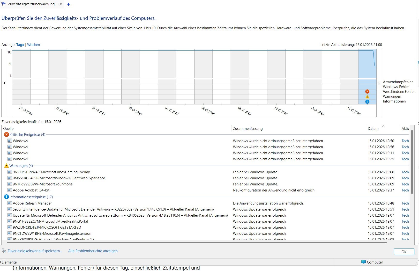 Startseite. Irgendwelche Eingaben sind nicht möglich. Dannach kommt die Fehlermeldung siehe Bild und der PC startet neu.