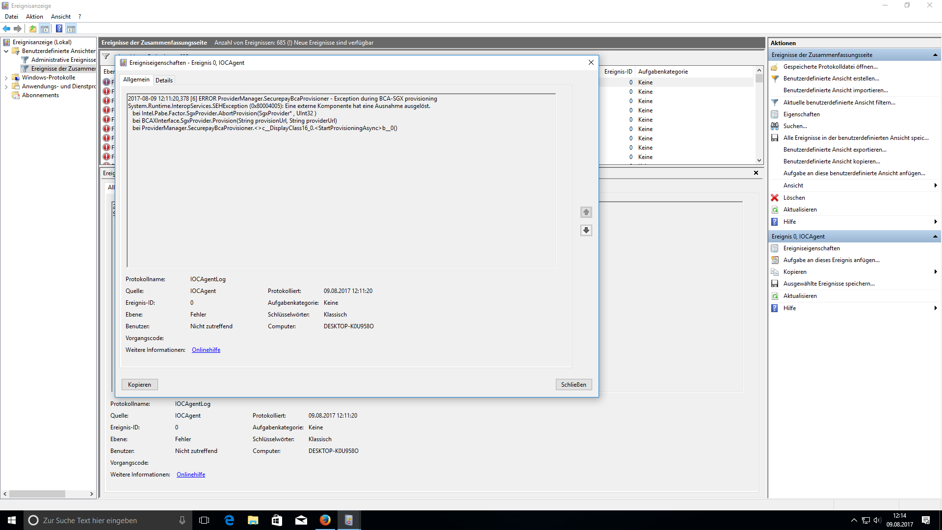 # "error providermanager.securepaybcaprovisioner" hat mit der Intel Management Engine zu tun, Treiber ändern, BIOS Update.
