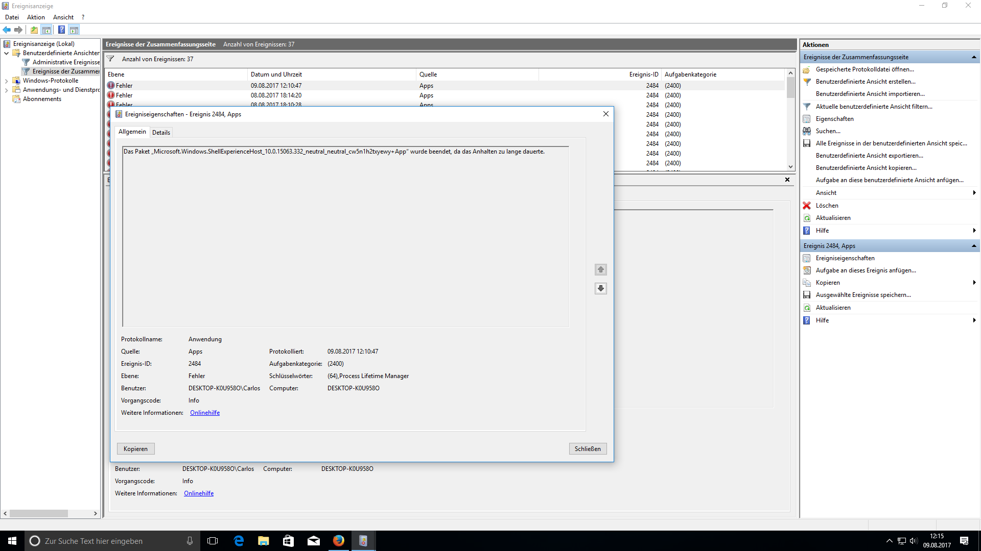 Irgendwie alles unspezifizisch und zusammenhangslos. Eine Möglichkeit: Windows bei einem diesser Fehler, vllt. 'Windows Shell Experience Host' nicht richtig startet weil es warten muss.