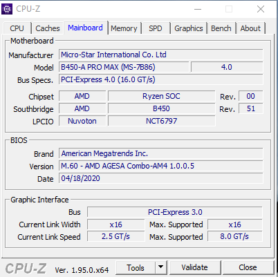 - Mainboard: MSI B450-A PRO MAX