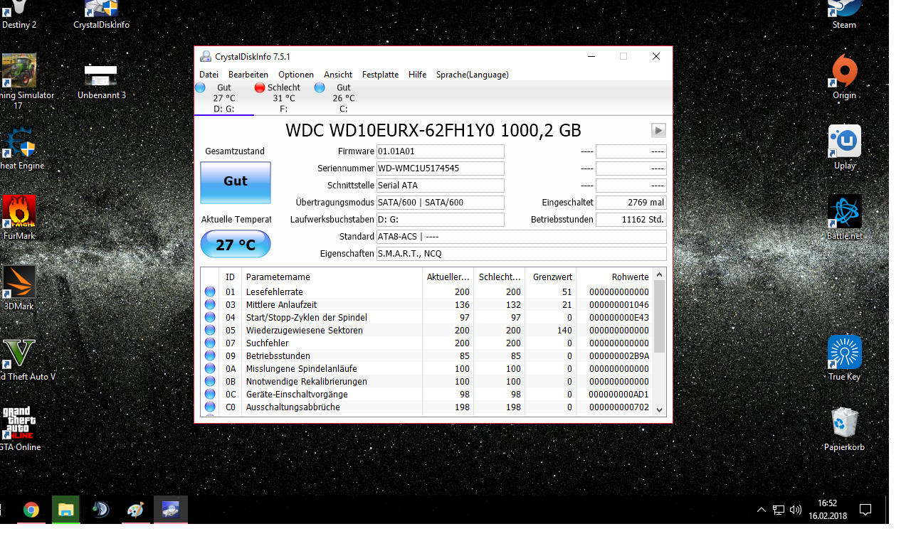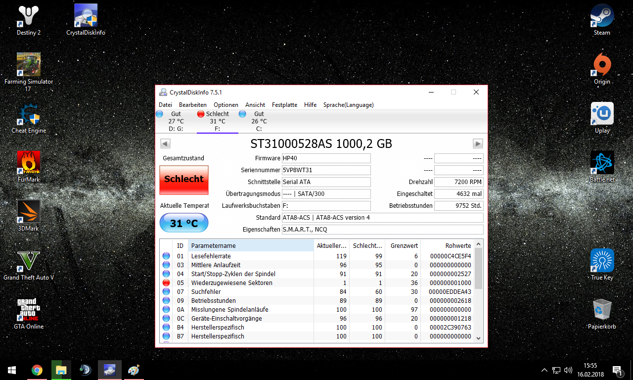 Grafikkarte und CPU kann man ausschließen da ich etliche stress Tests gemacht habe ohne Probleme. Ich bin schon am denken das es von der HDD kommt