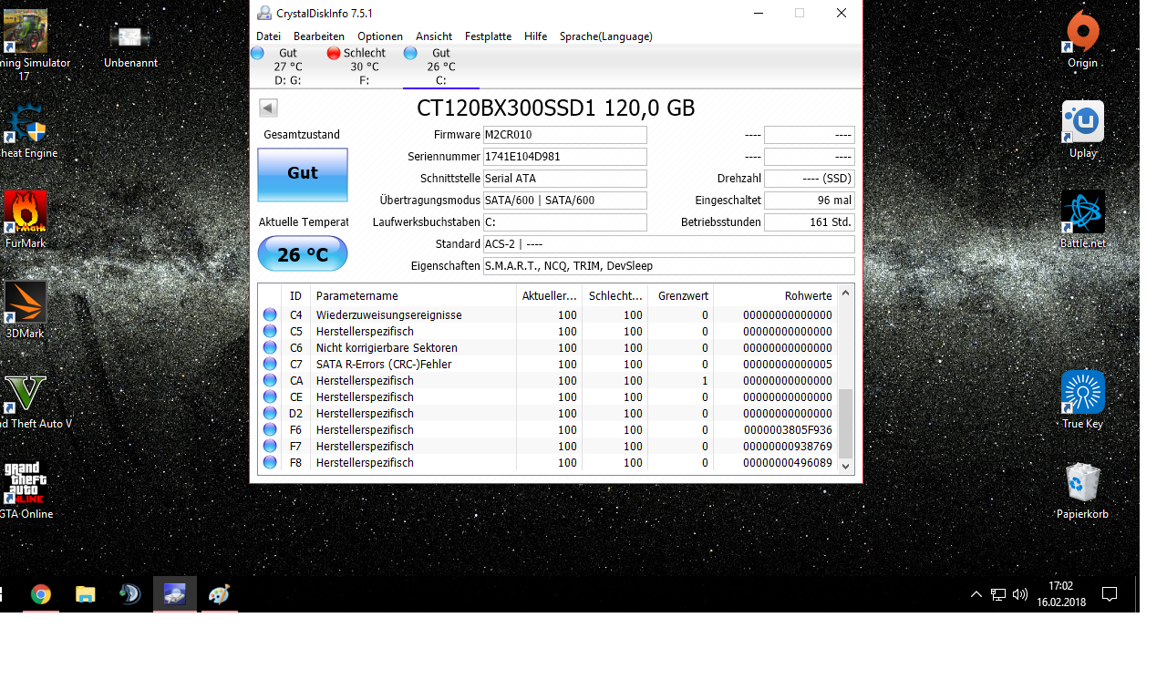 SATA Kabel würde ich tauschen, wegen dem CRC Fehler.