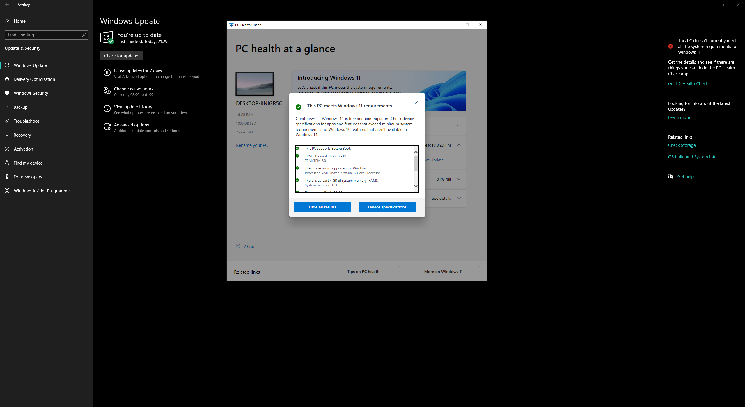 Und so nebenbei, wieso will Windows hier nicht updaten? TPM2 ist aktiv, Plattenspeicher vorhanden, Secure Boot ist an und RAM auch ausreichend.