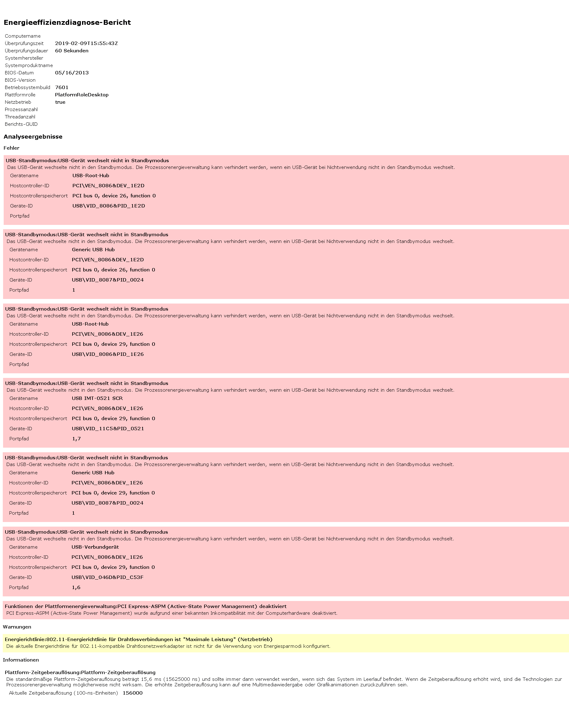 Ich habe deshalb mal einen Energieeffizienzdiagnose-Bericht erstellt (siehe Bild). Dieser sagt mir leider nichts. Könnt ihr erkennen, was der Fehler ist und weshalb der PC nicht sauber fortsetzt.