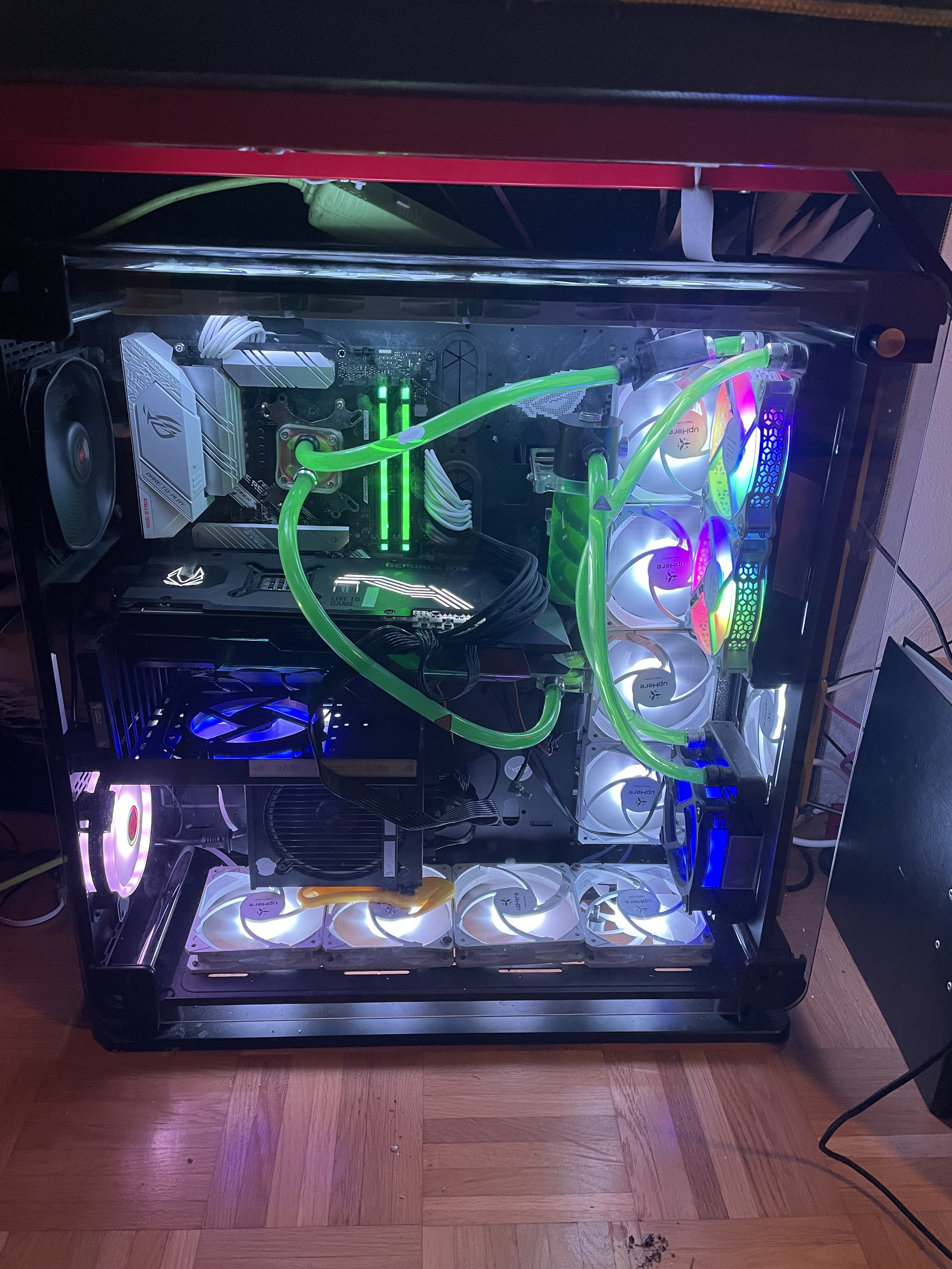Kühlung ka habe ich selbst aus Einzelteilen zusammengebaut mit Kühlflüssigkeit noch kein Algen Schutz mittel BE QUIET Netzteil Straight Power 11 1000W ATX 2.4 (