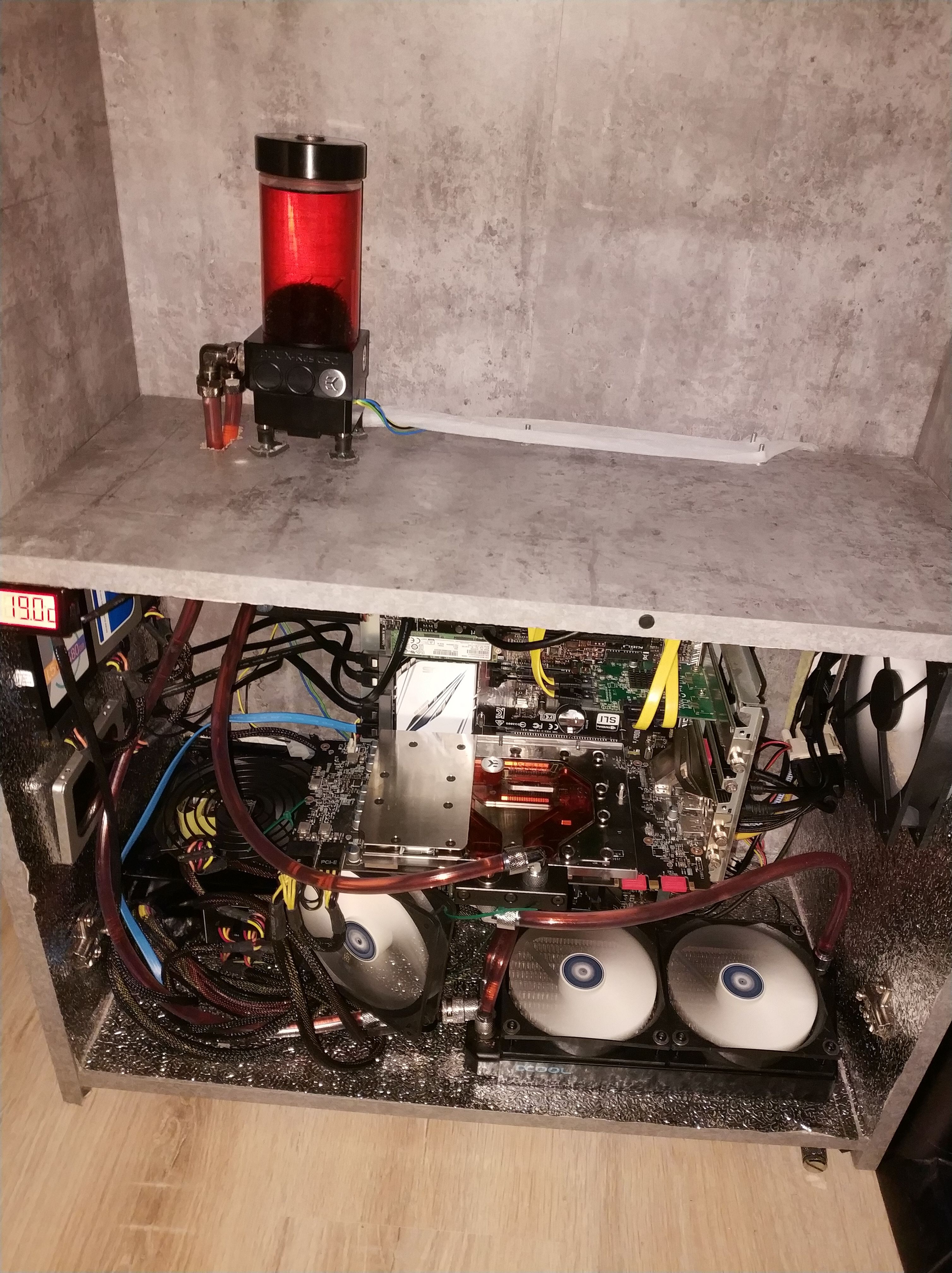 Zum Projekt: Nach gefühlten 10 Jahren in einem Xigmatek Midgard würde ich meinen PC gern in ein neues Gehäuse umziehen lassen. Allerdings steht mir nicht der Sinn nach einem klassischen PC Gehäuse. Persönlich gefällt mir das Lian Li PC O8 sehr gut, ist mir aber das Geld nicht wert. So kam irgendwann der Gedanke nach einem Eigenbau auf.