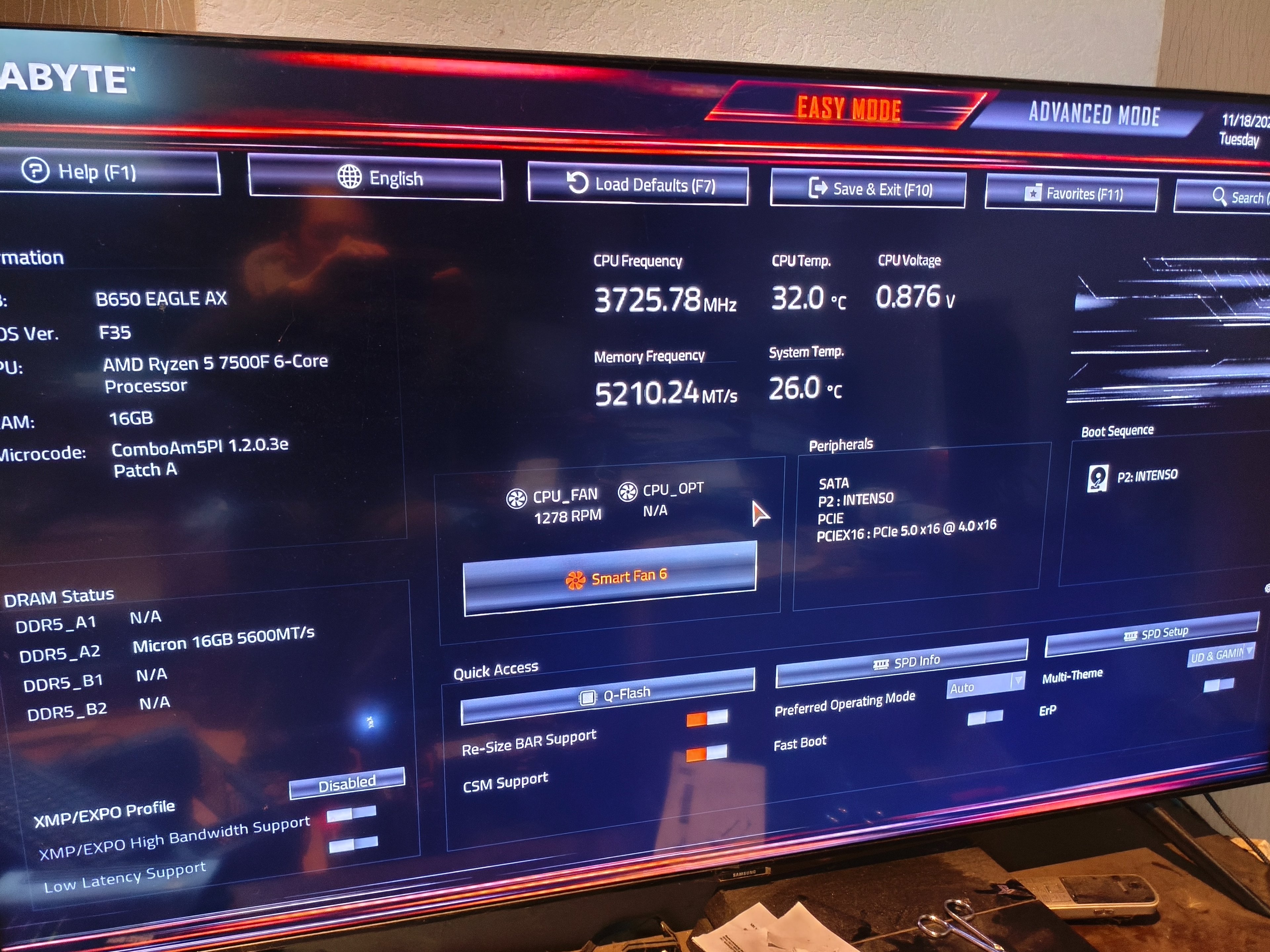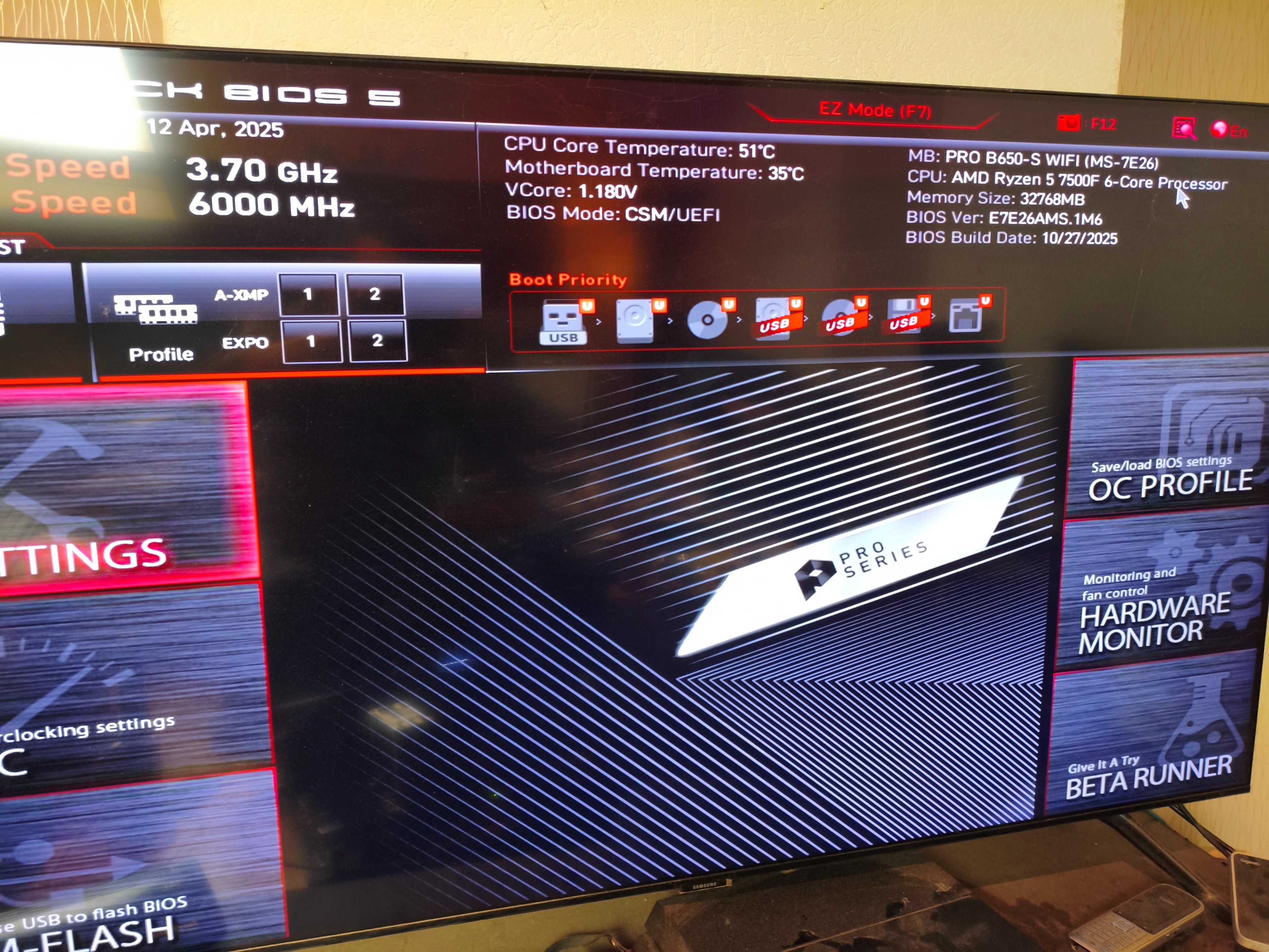 - Mainboard: Pro B650-S Wifi (Bios Build Date: 10/27/2025)