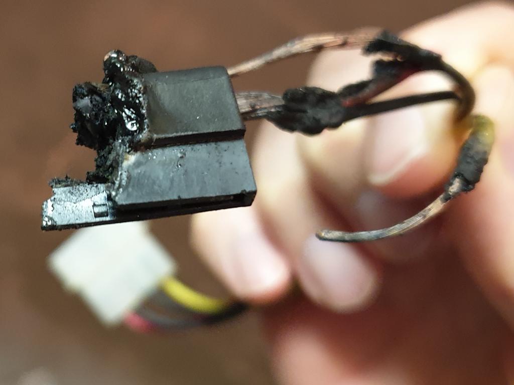 Das Feuer brach am SATA-Stromstecker am DVD-Laufwerk aus und hat die Rückseite des DVD-Laufwerks