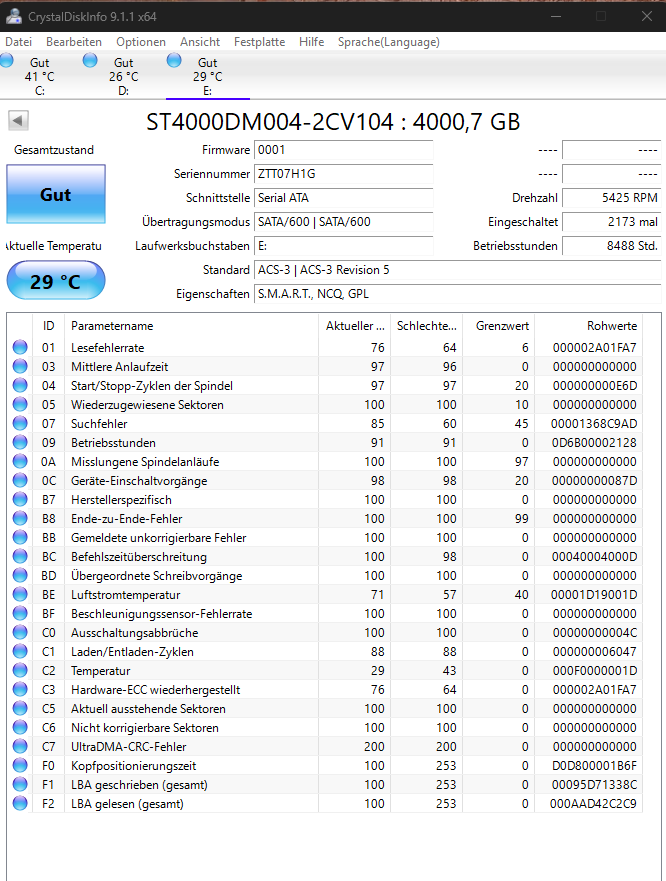 Edit: Die beiden HDDs 4TB (relativ neu - 1 bis 2 Jahre Alt) und 1.5 TB (Àlter) sind zwar angeschlossen, aber hauptsÀchlich wird die 4TB verwendet.
