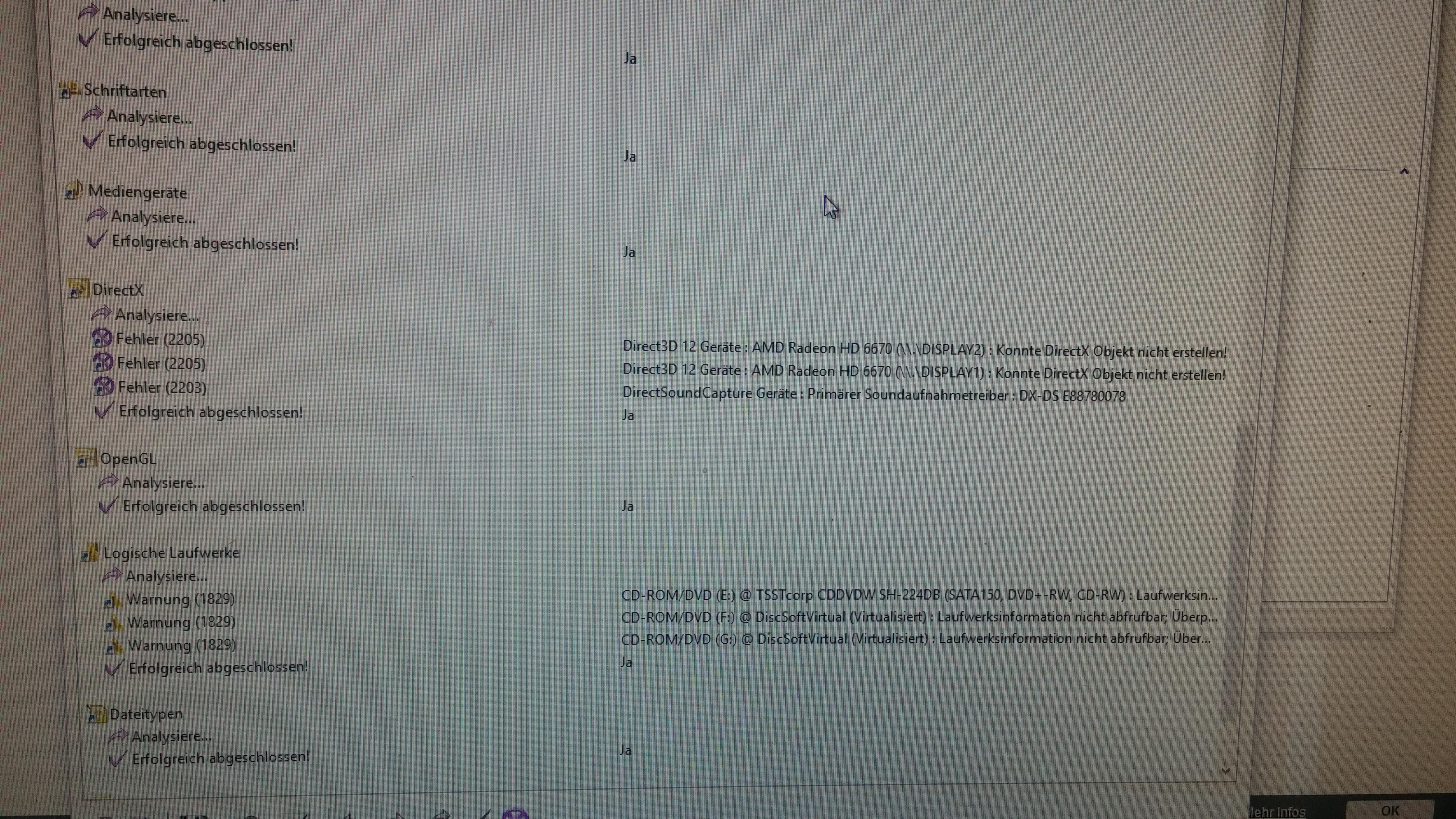 Wir haben zudem noch Sandra Lite durchlaufen lassen und haben einige Fehlermeldungen erhalten.