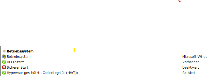 Bei HW Info ist mir aber auch aufgefallen, dass bei sicherer Start deaktiviert steht. Vielleicht hat das ja was damit zu tun.
