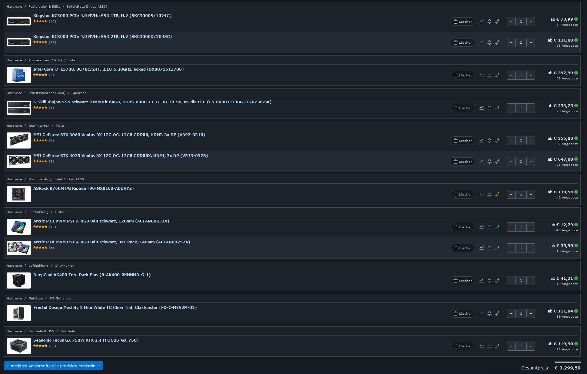 wir möchten als Gruppe einem Bekannten als Geburtstagsgeschenk einen PC schenken, der primär für Foto-/Videobearbeitung (Systemkamera und Drohnenaufnahmen) genutzt werden soll. Ich habe meine bisherige Zusammenstellung als Foto angefügt, bin aber in z.B. dem Punkt GPU noch unsicher welche der beiden GPUs in der Liste die bessere Wahl wäre und ob CPU oder GPU eher beansprucht wird.