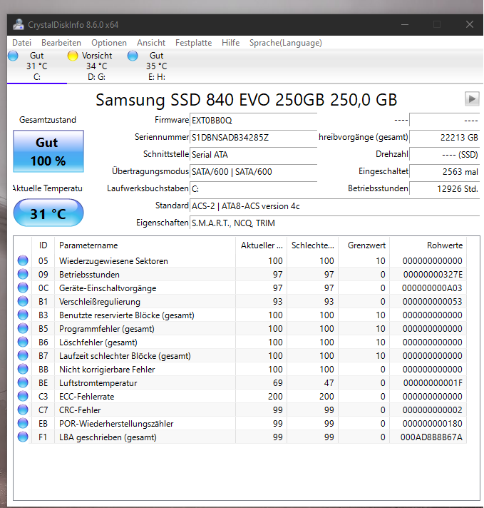 Hab die SSD sowie die verbauten HDD's auch gecheckt. Bilder davon sind im Anhang.