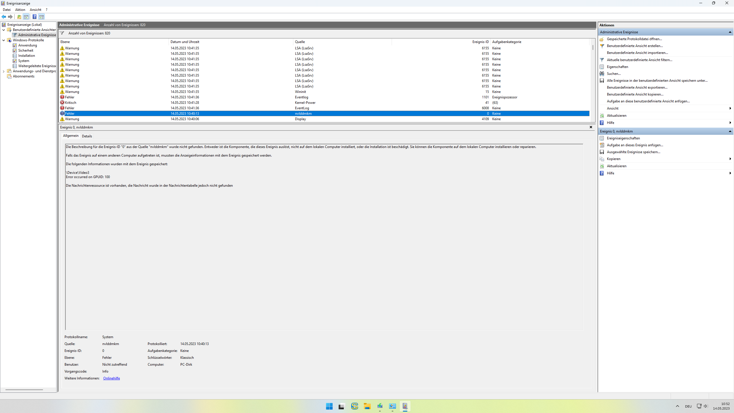 Mnchmal erscheint bei den Windows Benachrichtgiungen: "Der Zugriff auf die Grafikhardware wurde für die Anwendung cod.exe blockiert.". In der Ereingnisanzeige wird zum Absturzzeitpunkt mehrfach die "nvlddmkm" aufgeführt.