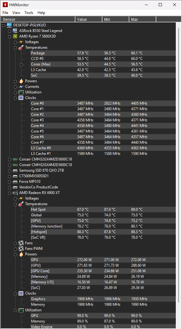 - Mainboard: ASRock B550 Steel Legend