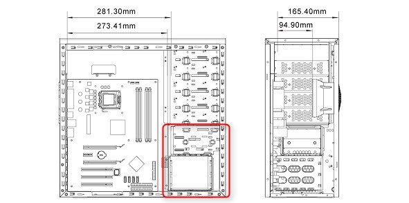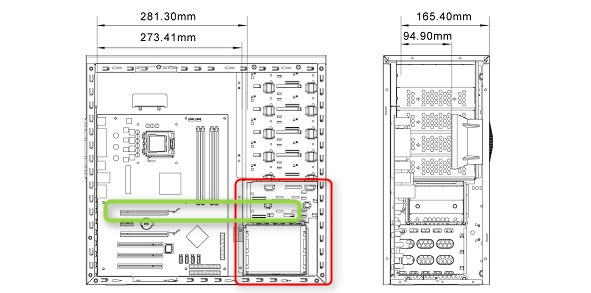Von daher würde es ja passen (siehe neues Bild) und die LW könnte man ja auch im oberen Teil unterbringen.Bzw ist es irrelevant, da die Grafikkarte ja normalerweise im ersten x16 PCIe 3.0 Slot sitzt, also dem oberen, auf höhe des festen Bereichs