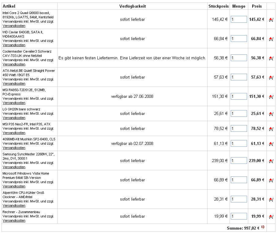 Ich hab mir folgende Zusammenstellung bei hardwareversand.de erstellt, was sagt Ihr dazu?
