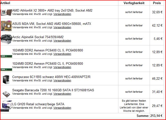 kerki0803: das sieht ja super aus, aber ich brauche keine 160gb hdd, da ich eine externe habe, mir würde ja eine 80gb oder reichen! ausserdem bräuchte ich eine dvi anschluss für mein samsung bildchirm!
