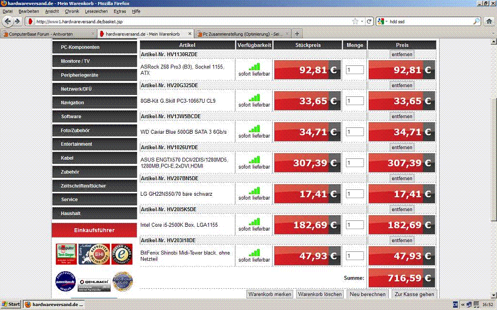 Wollte eigentlich bei Harwareversand bestellen aber es gibt ja doch noch andere Anbieter die teilweise noch günstiger sind, aber da müsste ich ein paar Teile dort und ein paar andere Teile dort bestellen. Ist das ok?