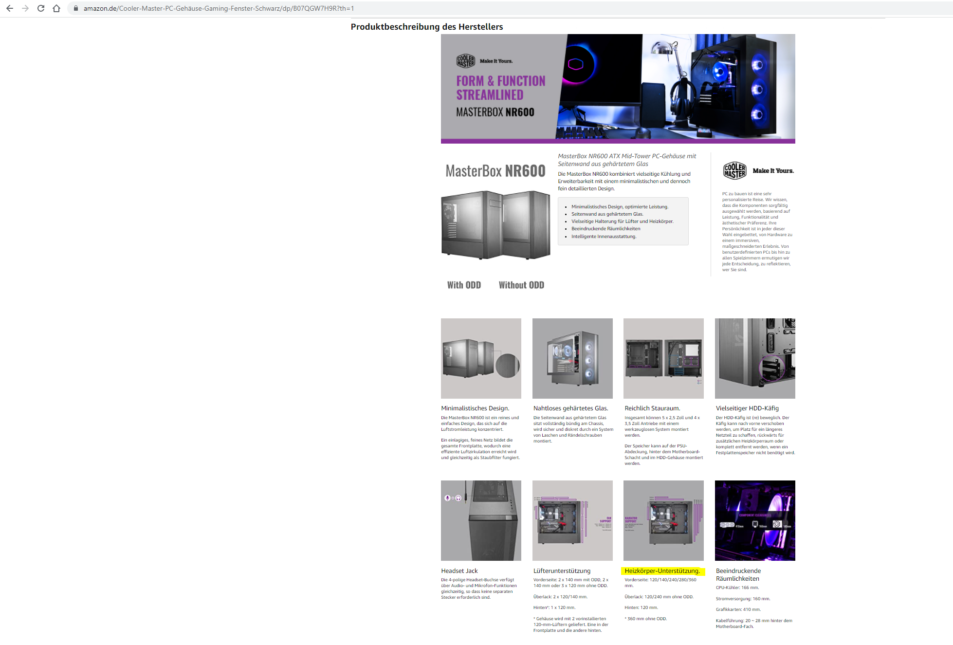 bitte was? wo soll das stehen? ist das evtl ne komplett vermurkste übersetzung von "radiator"?Mal eine Frage noch zum Case: Dieses CoolerMaster Nr600 hat eine Heizkörper unterstützung.