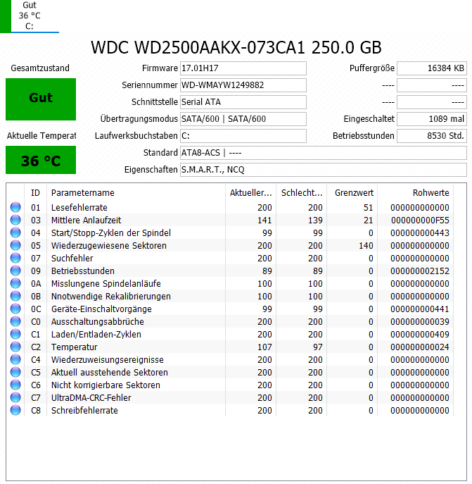 Deine HDD ist übrigens OK - "Systemdateien überprüfen" würde aber auch nicht schaden...