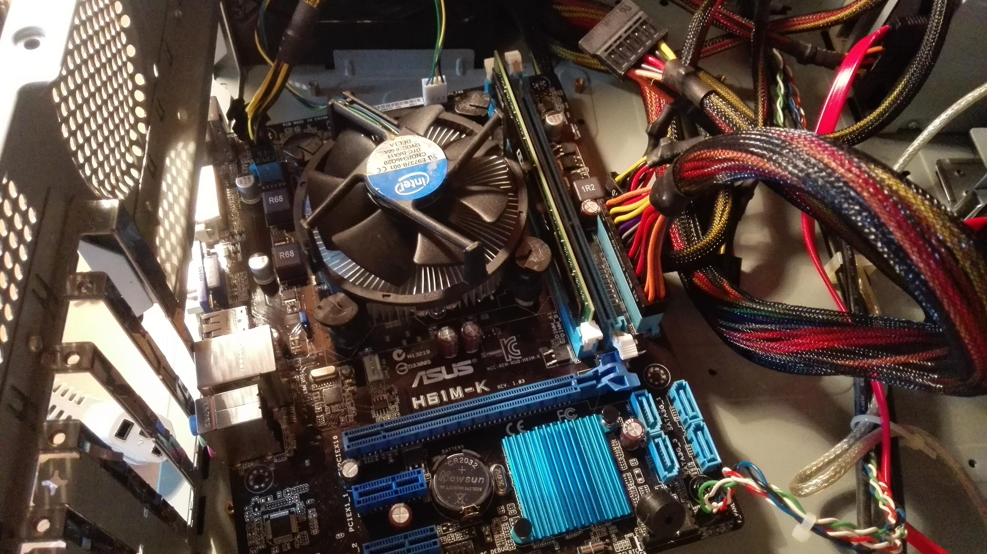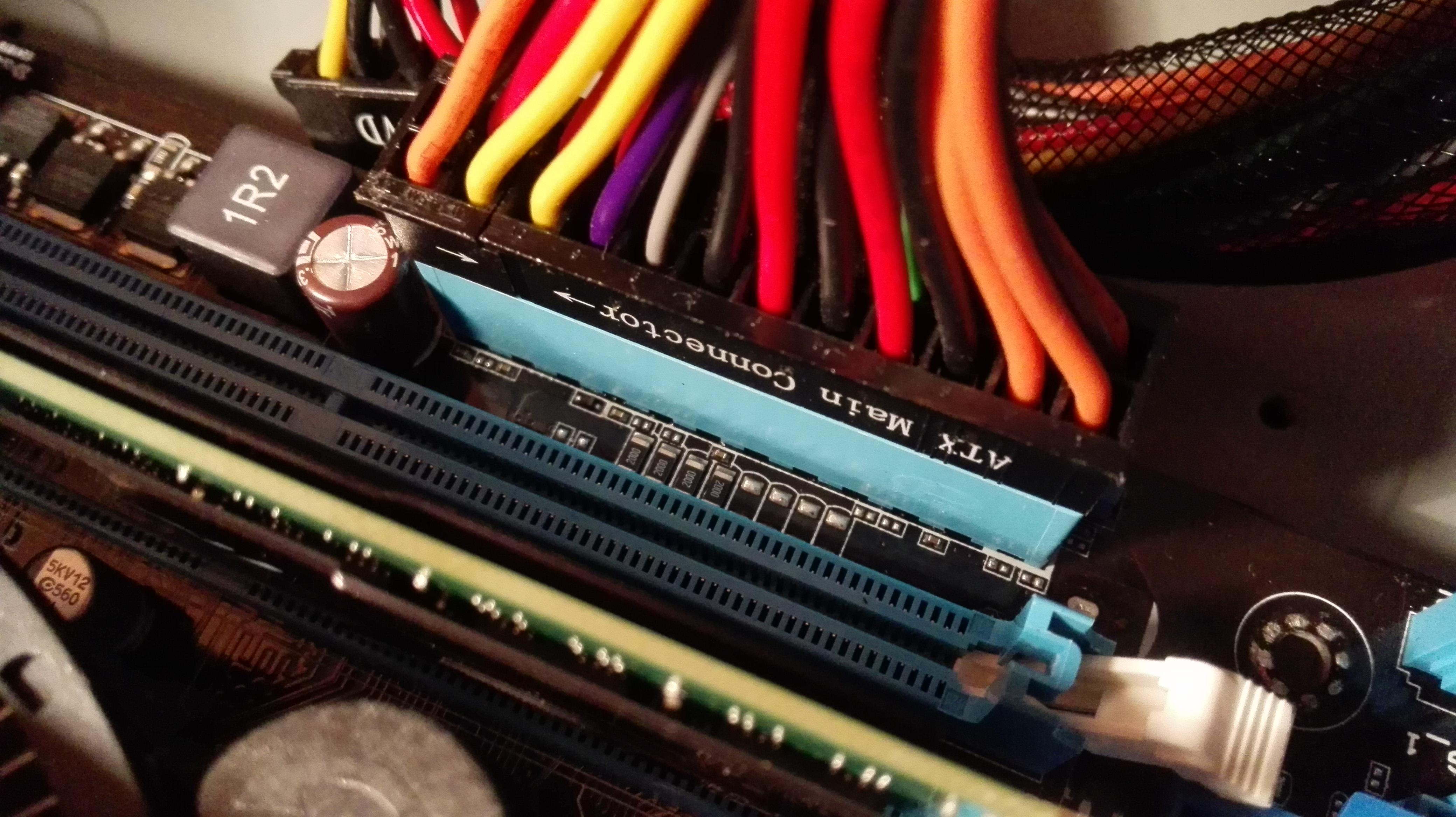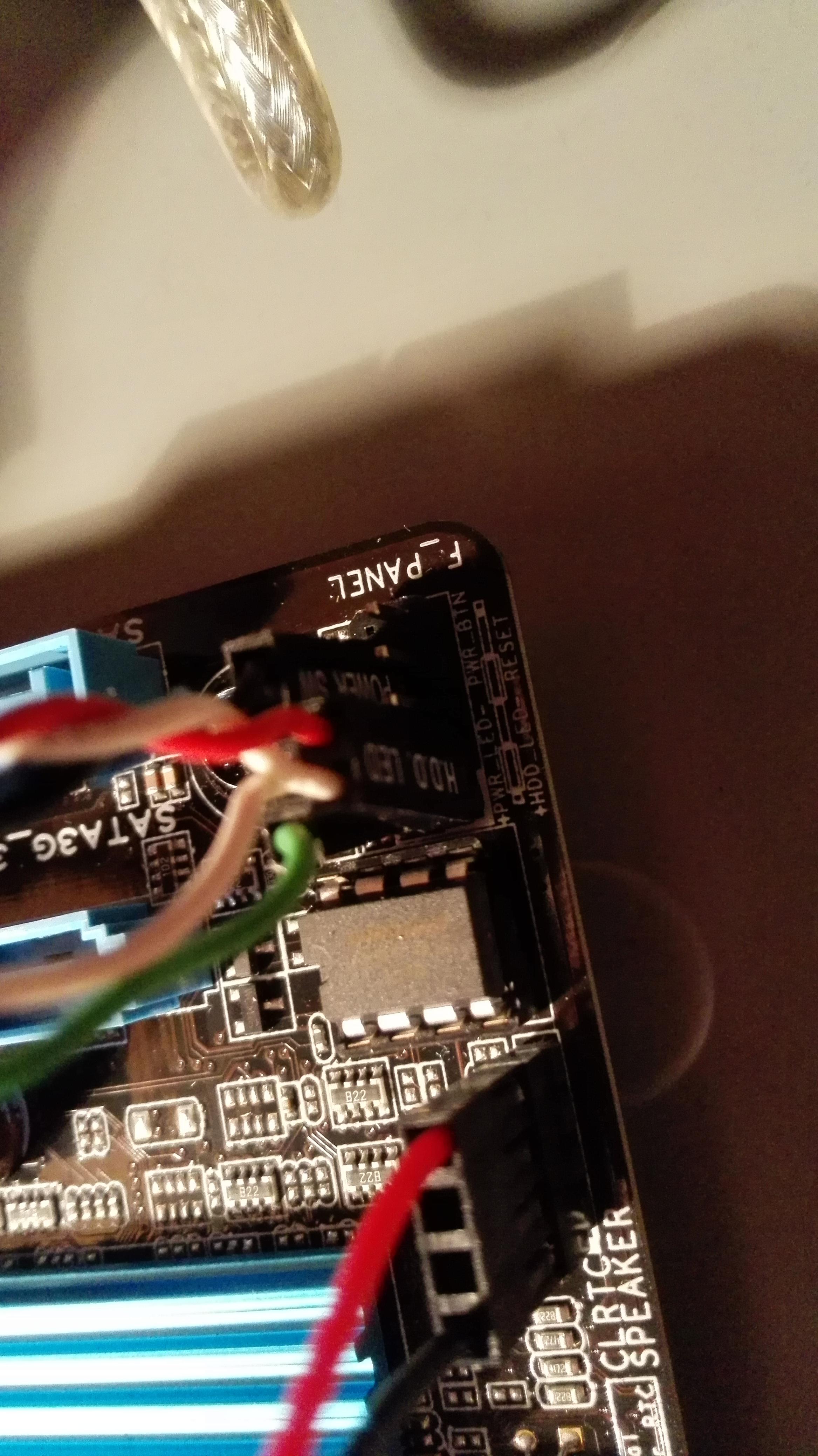 Kannst ja auch mal mit nem Schraubenzieher (oder etwas anderem Leitfähigen) auf den kleinen Pinkontaktenm auf dem MB zwischen Ground und Power Kontakt erstellen... Normalerweise sollte er dann angehen.