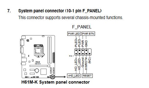 der Power Stecker muss an PWR BTN, wie rum der da angeschlossen wird ist egal, der Reset Stecker muss an Reset, wie rum der da angesteckt wird, ist auch egal und der Stecker HDD muss an HD LED, da einfach Probieren, wenn es bei PC an nicht leuchtet, den Stecker einfach drehen. und POWER LED muss an PWR LED