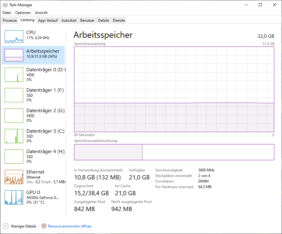 Der nicht ausgelagerte Pool beim RAM liegt auch unter 1 GB