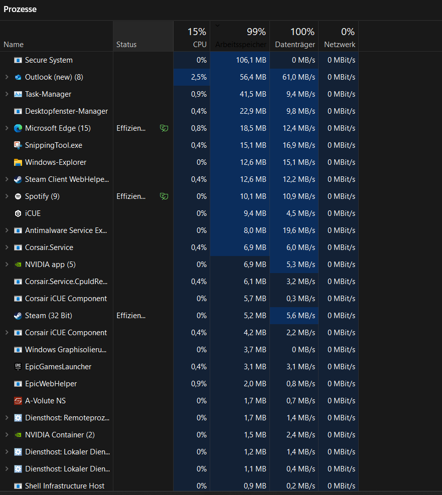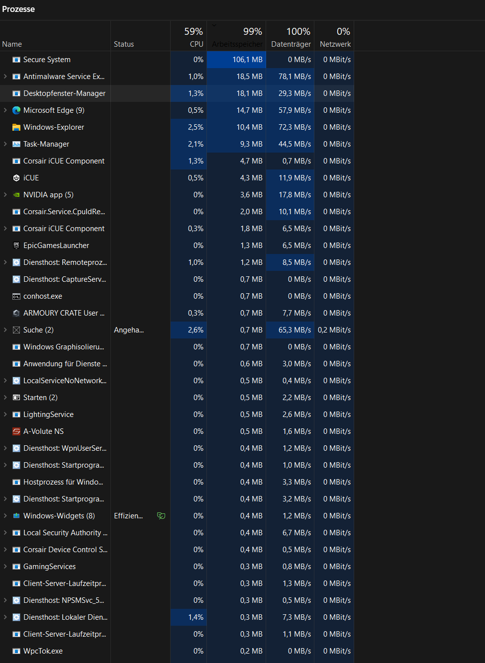Nach ca. 25min benutzen lagged es stark und der RAM und die SSD sind zu 100% ausgelastet obwohl ich nur meincraft und Spotify benutze. könnte mir jemand irgendwie helfen oder ein paar Tipps geben?