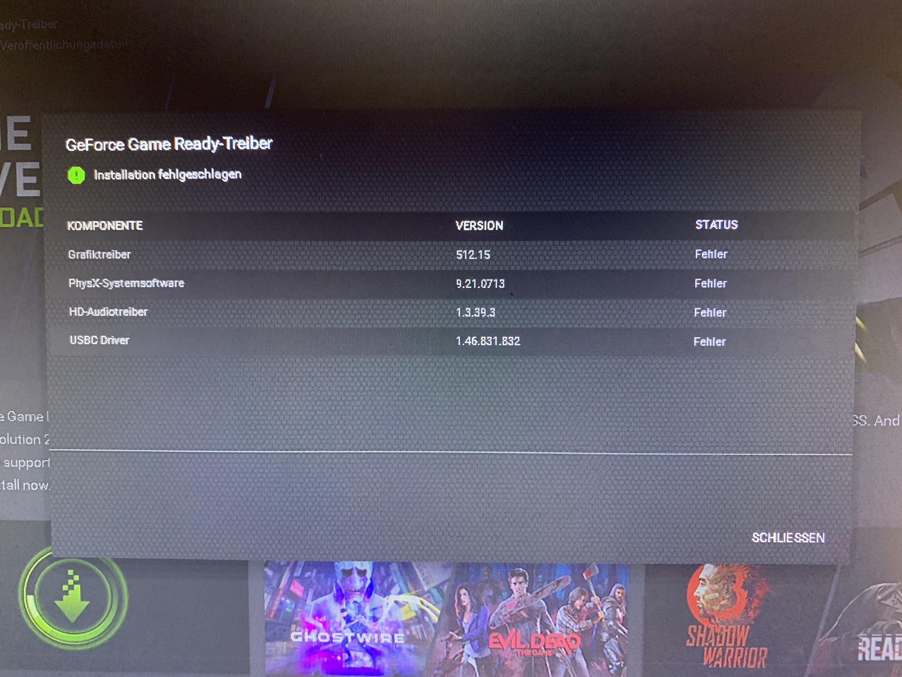 Edit: GeForce Treiber update ging nicht, überall steht Fehler.