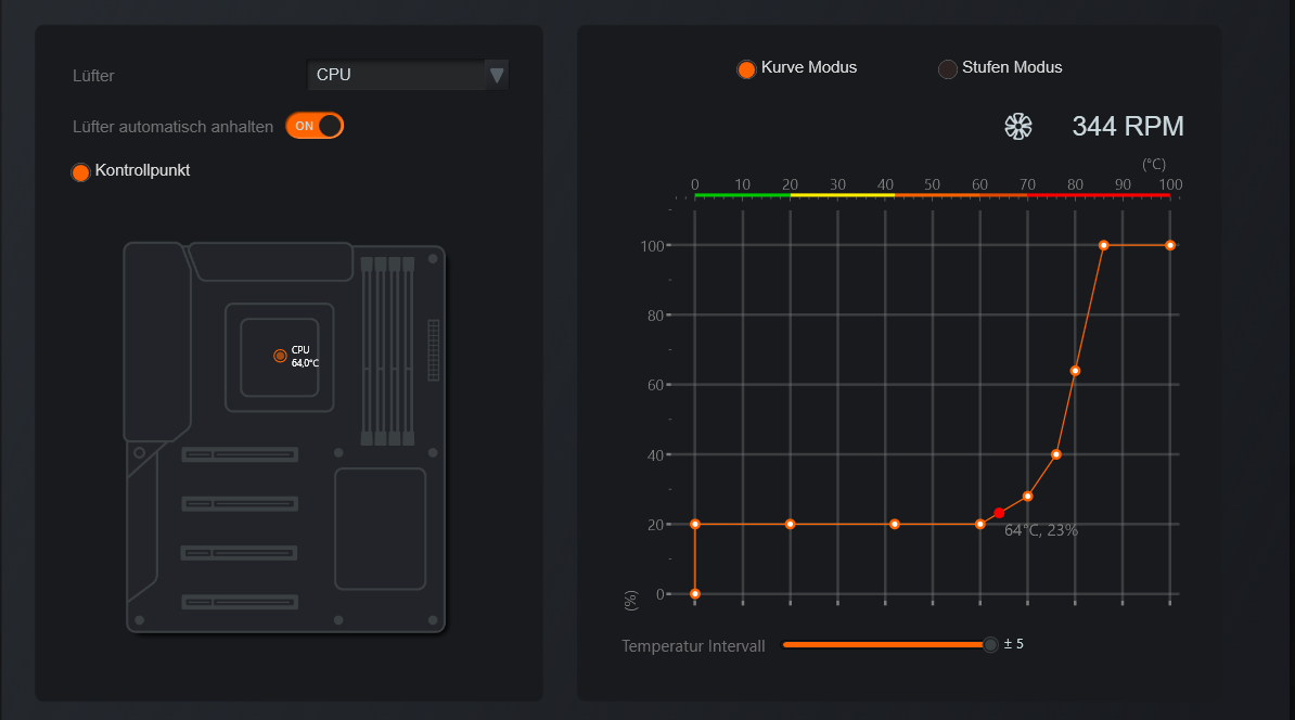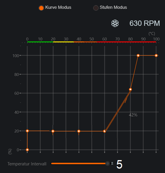 prian vorgeschlagen hat ich nutze da die Auto (Beta) Curve u. hab die Idle Drehzahl bis 65°C u. die Max Drehzahl der Lüfter bei 80°C eingestellt.