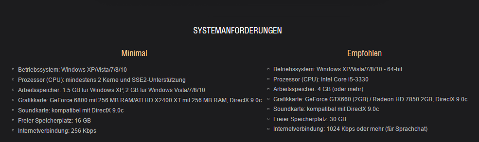 Hab im Anhang mal die Info zu meinem Pc hinzugefügt und die Mindestanforderung von World of Tanks.