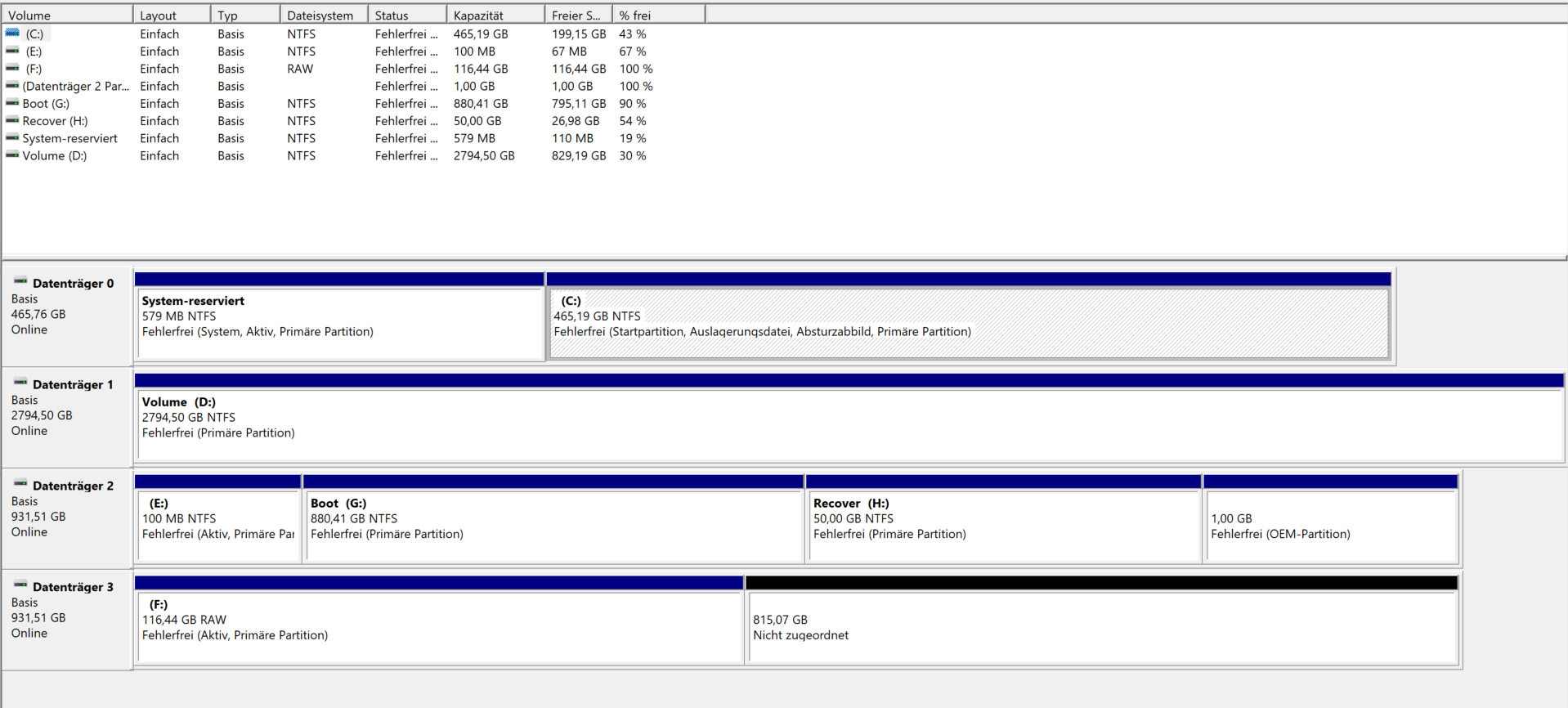 meine Frage steht ja schon oben, ich gehe mal etwas ins Detail. In meinem Haus sind 2 Computer im Betrieb, ein alter Aldi Rechner und einen Neuen selbst Zusammengebauten. Der Aldi Rechner macht schon länger Probleme, hängte sich auf und muss am Gehäuse per Startknopf Herunter und Wieder hochgefahren werden. Letzte Woche ist er allerdings gar nicht mehr Hochgefahren, ziemlich sicher wegen den Festplatten. Ich habe sowohl die Boot als auch externe Festplatte Aus und in den neuen Rechner eingebaut und musste leider feststellen dass die Boot-festplatte komplett ihre Formatierung verloren hat und nicht mehr geöffnet werden kann und die Externe die meisten Daten komplett gelöscht hat. Ich denke mal bei der Externen Festplatte wurde hoffentlich nur der Index gelöscht, da gehe ich mit Test Disk ran, aber was mach ich mit meiner Boot-platte? Ohne Formatierung kann das Programm auch keine Index Datei suchen, oder ist wenn die Formatierung weg ist keine Wiederherstellung möglich? Wie soll ich da ran gehen um die Jahre alten Daten retten zu können? Ich speichere sicherheitshalber auch nichts auf der Festplatte und öffne keine Dokumente, wer weiß.