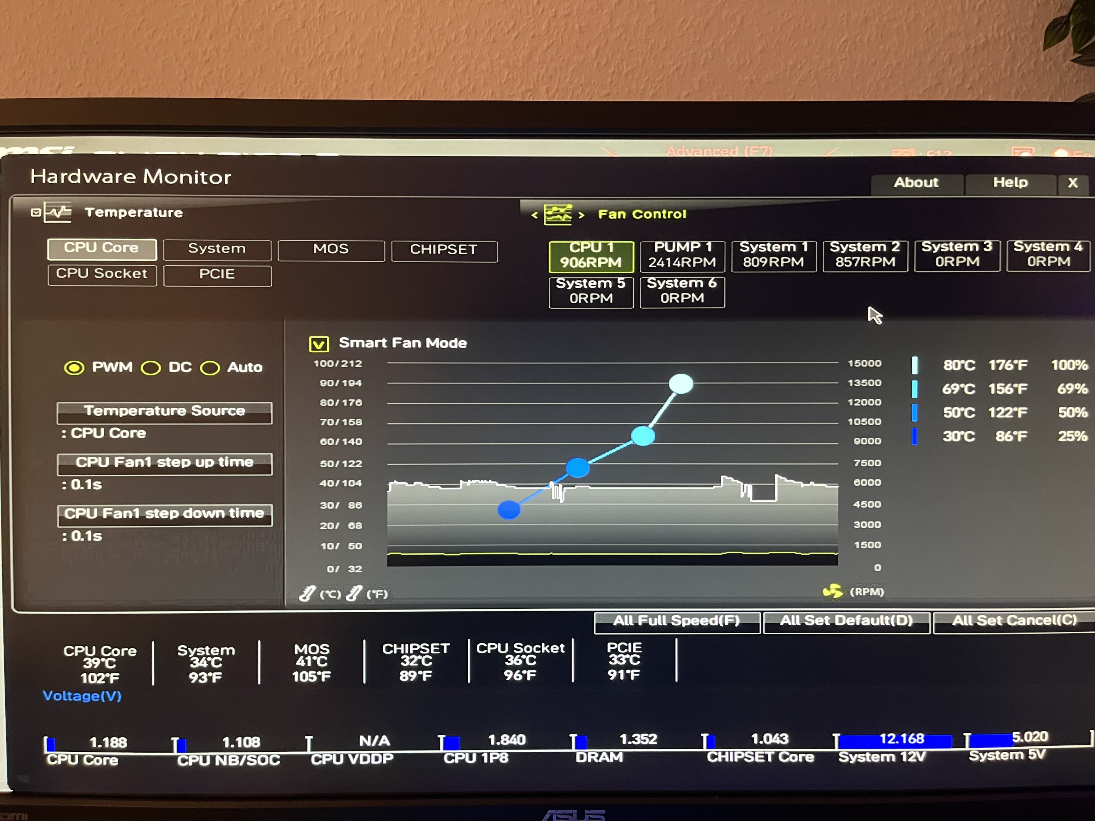 1. Bei CPU Fan1 Step up time 0,2S einstellen.