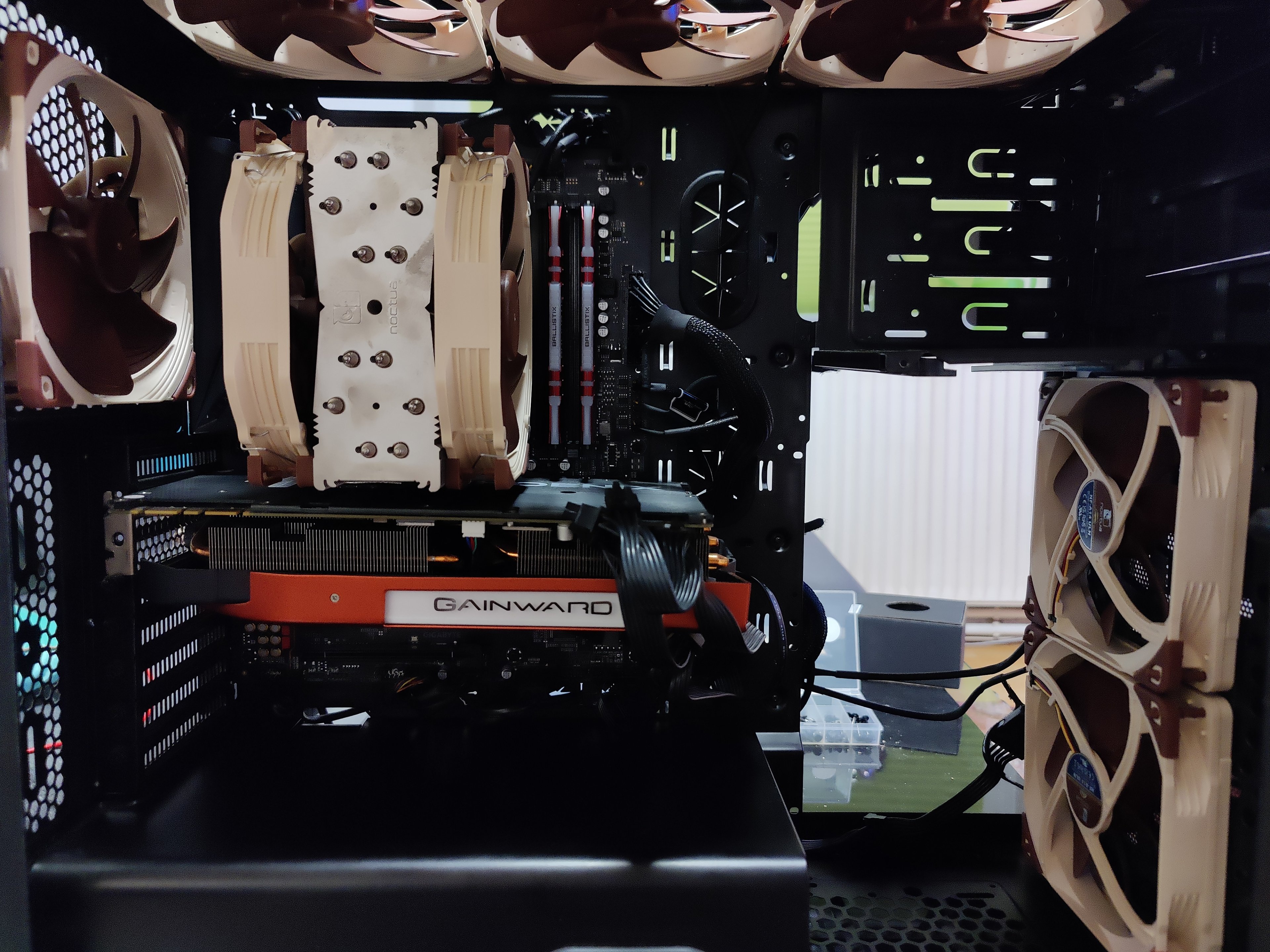 Bei Ryzen 5000 hab ich dann wieder einen neuen Rechner gebaut und hab dann alles neu gemacht. Wieder alles mit Noctua, diesmal aber die Chromax Variante, obwohl ich kein Seitenfenster hab