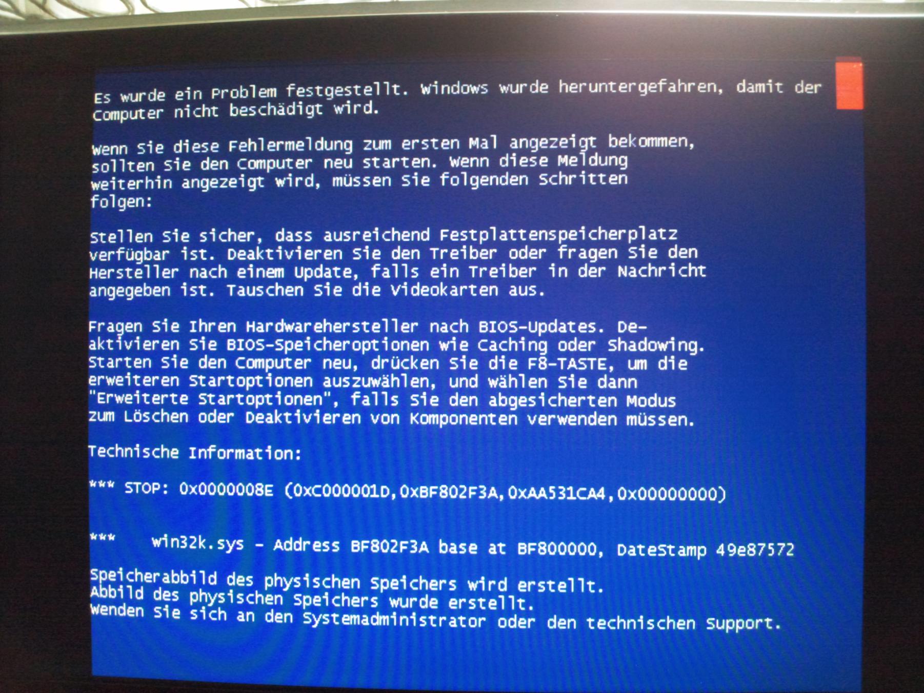 Es gibt Tage, da läuft mein PC ganz normal. Aber dann, auf einmal ohne Vorankündigung startet er einfach neu und hängt sich spätestens im Windows wieder auf, meist schon vorher. Ich hab mal den Automatischen Neustart bei Systemfehlern deaktiviert und hab den angehängten Blue-Screen bekommen. Im Internet finde ich nichts darüber.