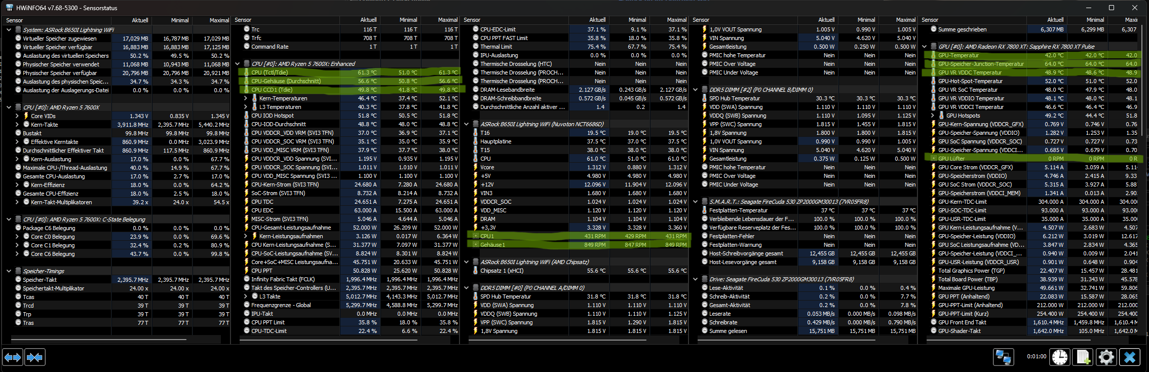 1) Sobald ich ein Spiel zocke, in meinem Fall meistens Age of Empires III über Steam laufen die Lüfter an und ich hab das Gefühl neben mir startet ein Jet. Manchmal in selteneren Fällen passiert das auch einfach beim YouTube schauen. Und oft hört das auch gar nicht mehr auf, selbst wenn ich dann alles schließe und nur den Desktop offen hab. Muss dann den PC neustarten und dann laufen die Lüfter wieder auf normaler Drehzahl / Lautstärke. Ich denke das kann ich am einfachsten mit Anpassung der Lüfterkurve oder so ändern. Allerdings will ich da auch nicht zu sehr dran rumwerkeln weil vielleicht braucht er ja diese Drehzahl da er sonst überhitzt?